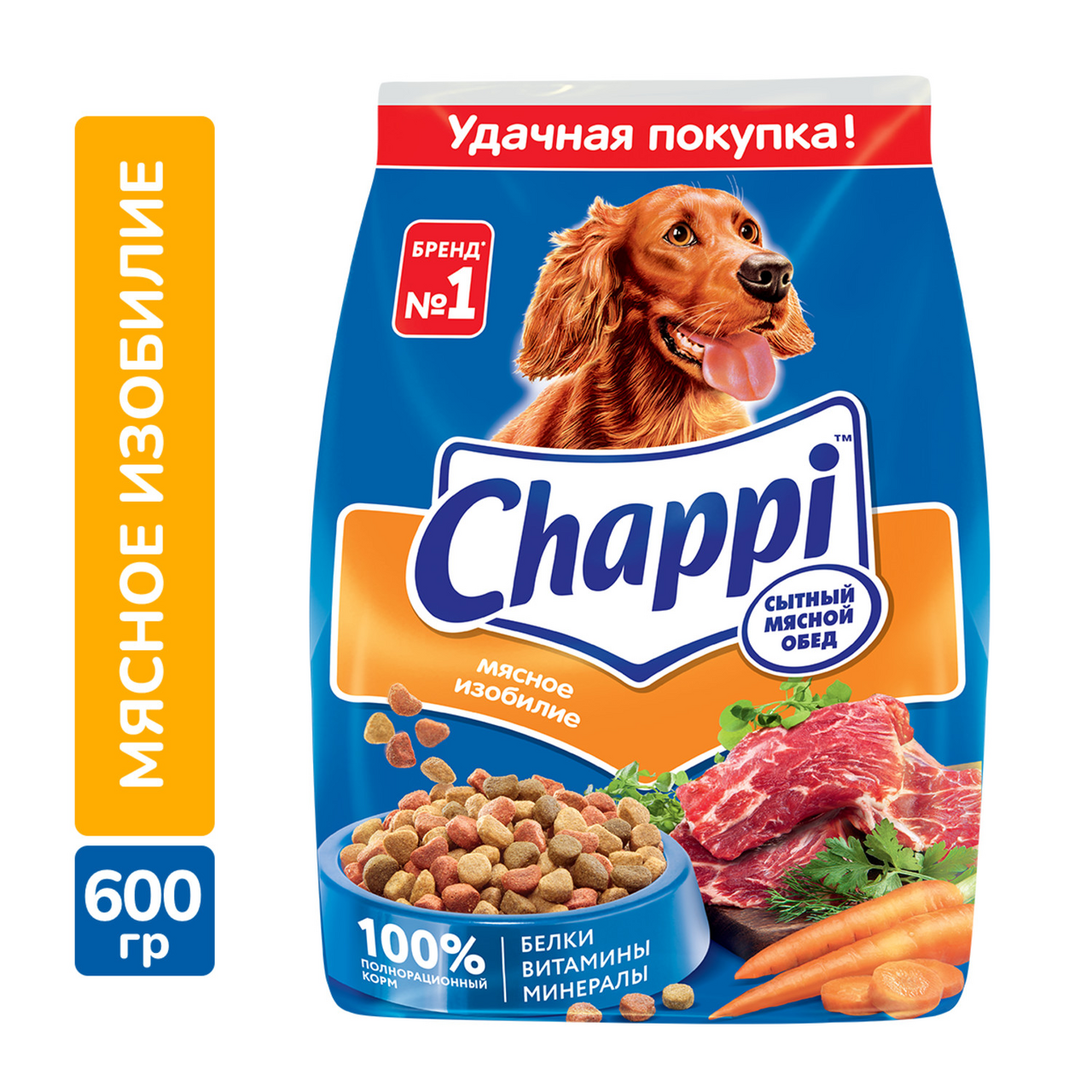 Корм сухой Chappi Сытный мясной обед Мясное изобилие для взрослых собак всех пород, 600г