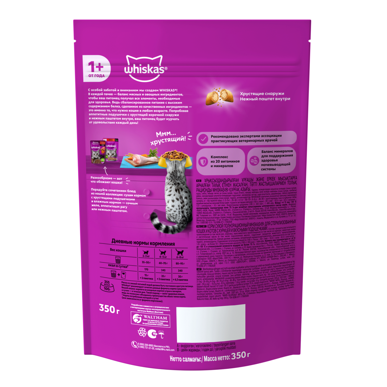 Корм сухой Whiskas Вкусные подушечки для стерилизованных кошек с курицей, 350г