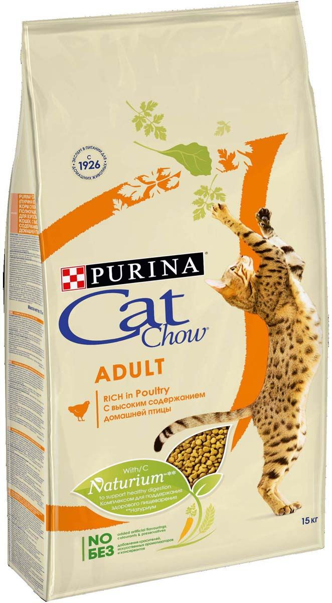 Корм сухой Cat Chow Adult N1 для кошек с домашней птицей, 15кг