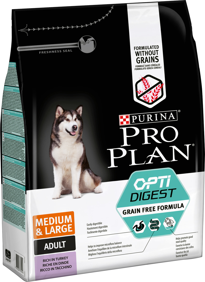 Корм сухой Pro Plan для собак средних пород с чувствительным пищеварением с индейкой, 2.5кг