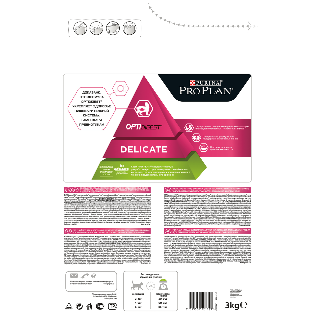 Корм сухой Pro Plan Delicate для кошек с чувствительным пищеварением с ягненком, 3кг
