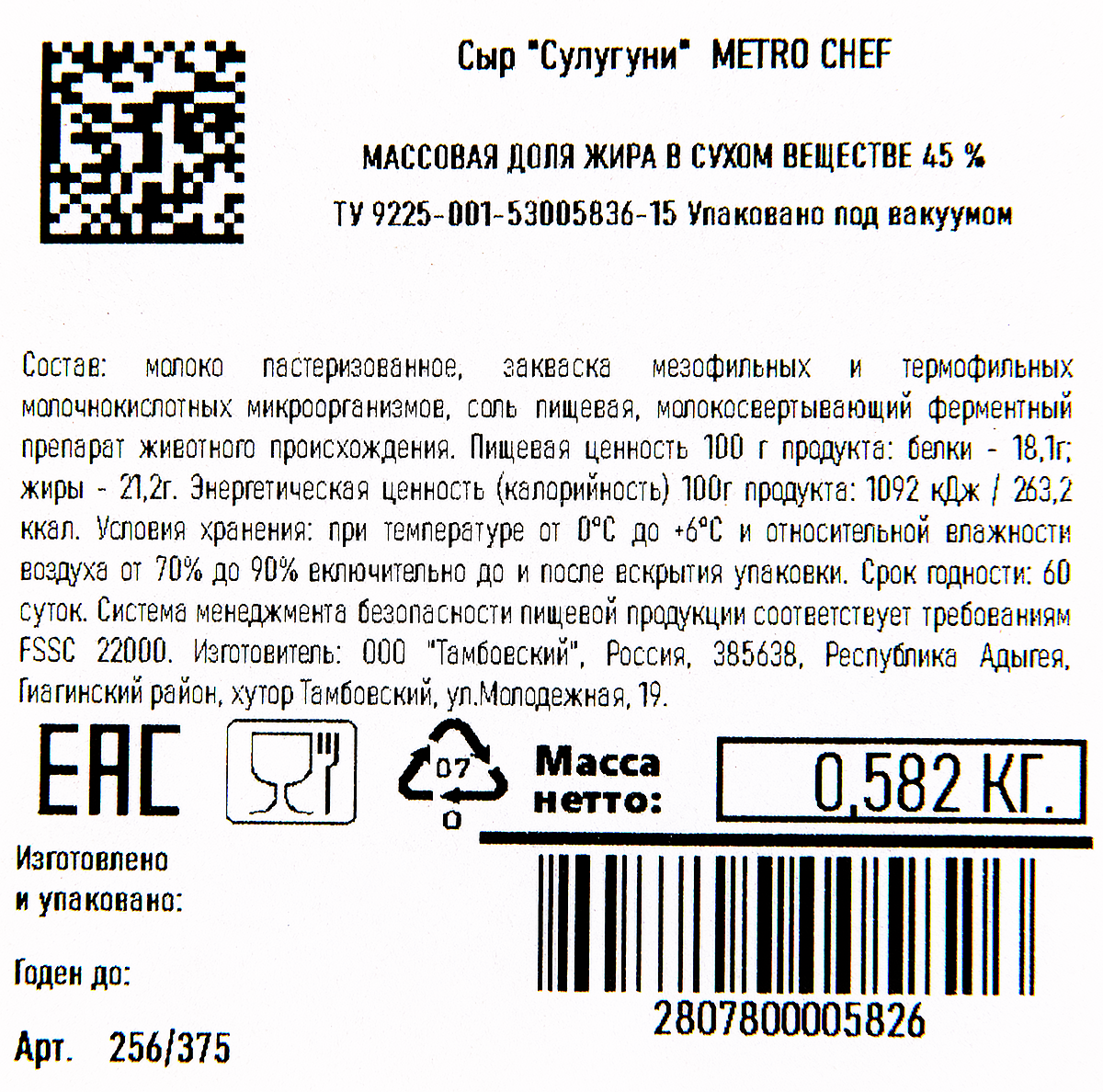 Сыр сулугуни 45% Metro Chef, весовой — это отличный вариант перекуса, а также дополнения к основному блюду. У продукта неплотная консистенция и нежный, нейтральный вкус. Сулугуни подходит для приготовления обычных и горячих бутербродов, отлично сочетается с любыми мясными и колбасными изделиями. Также сыр можно поджарить, получив таким способом тающую серединку и хрустящую, аппетитную корочку. Продукт считается отличным источником белка, а также таких элементов как кальций, фосфор, натрий.