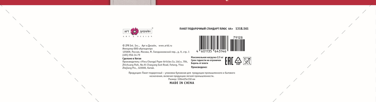 - Тип Подарочный пакет