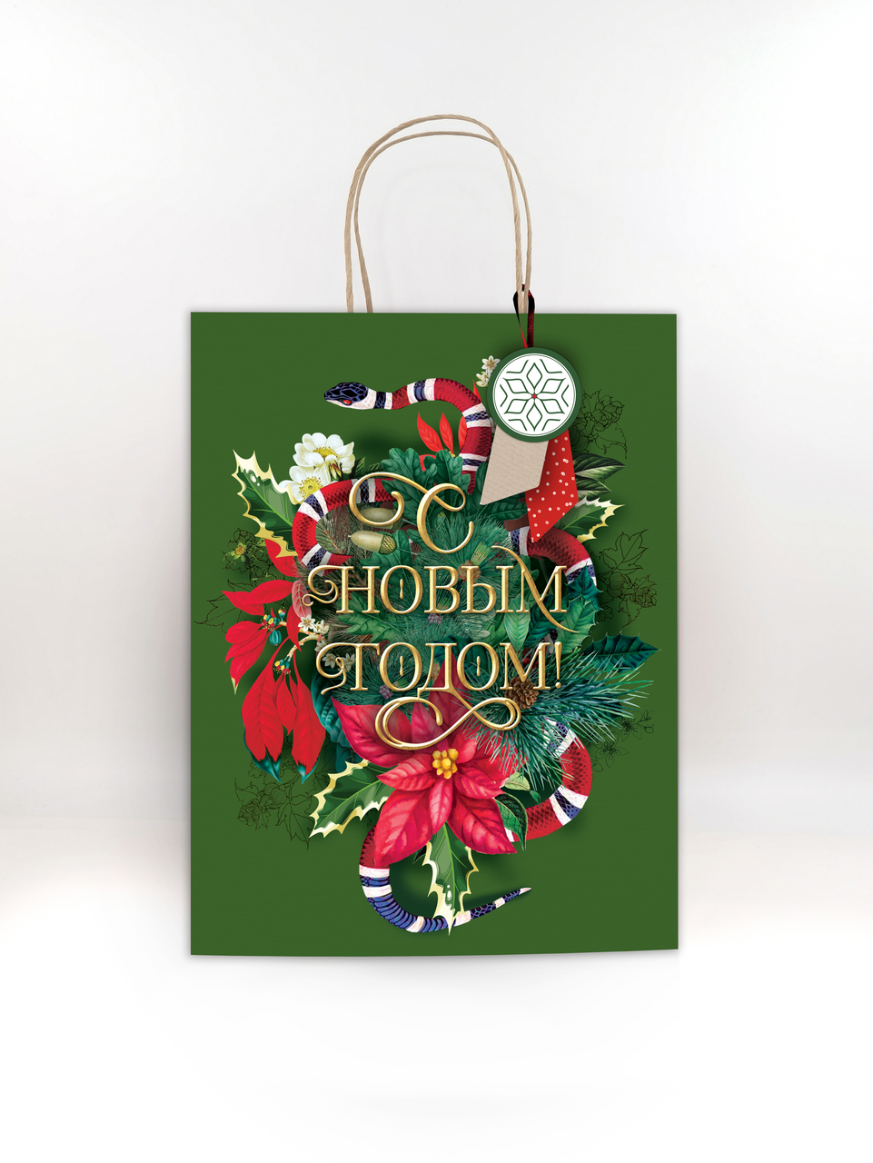 Сумка подарочная Лакарт Дизайн Цветы и змеи, 27 х 36 х 12см