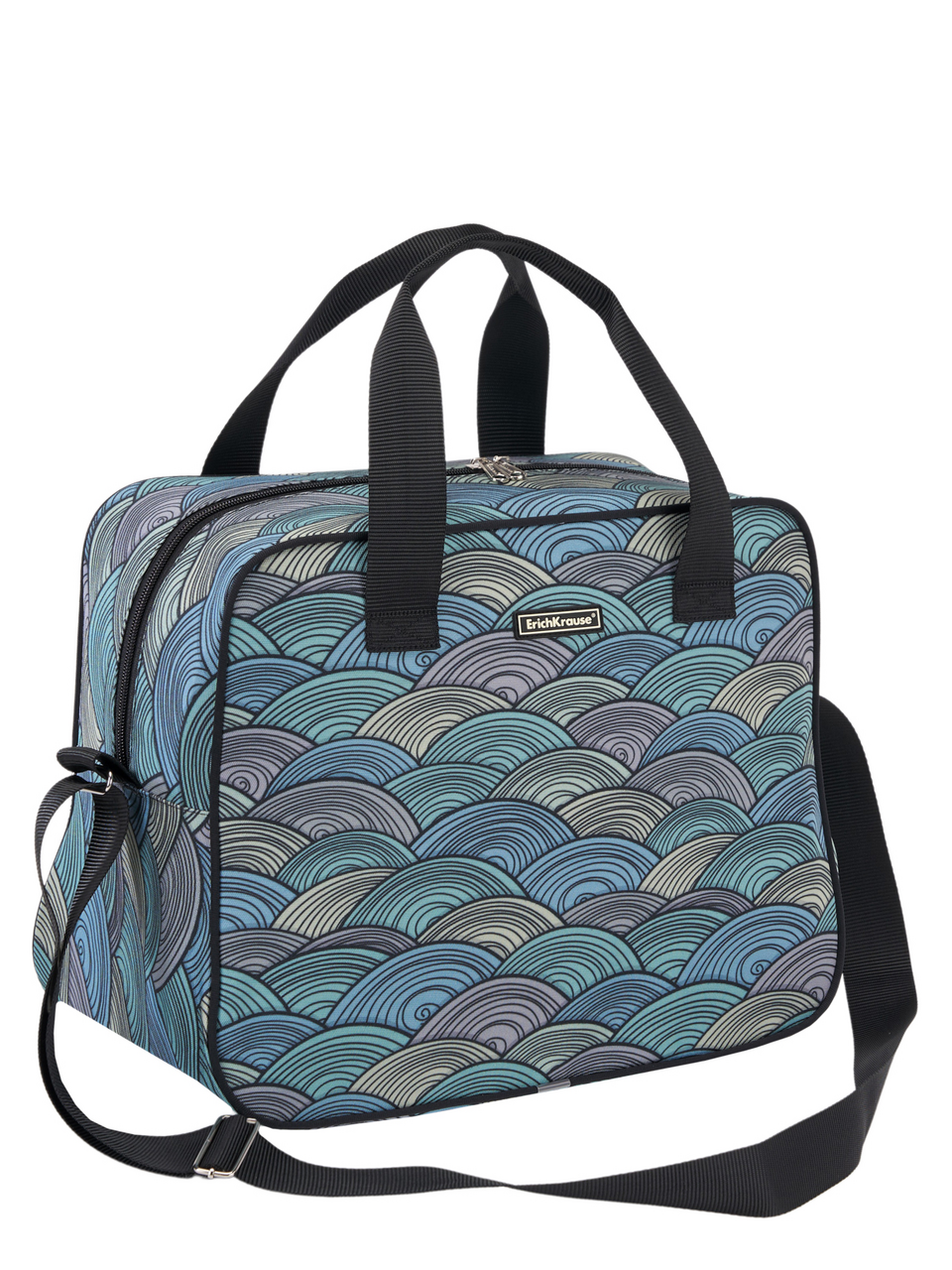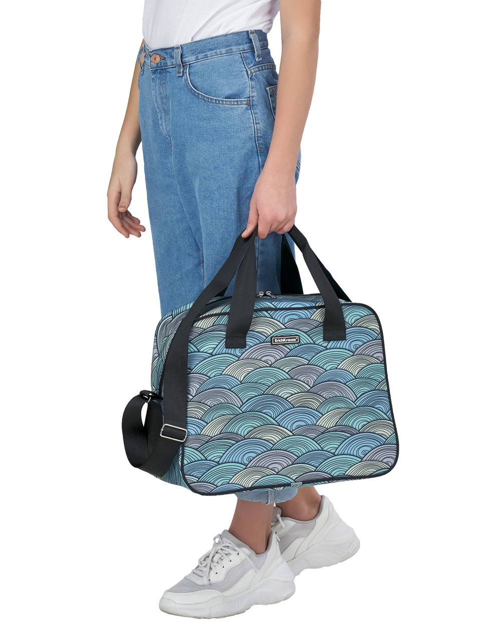 Универсальная модель отлично подойдет для спорта и путешествий. Сумка, 38x29x20 см, изготовлена из износо- и морозостойкого водоотталкивающего 100%-го полиэстера. Внутри карман на молнии. Сумка отлично держит форму благодаря жесткому канту и внутренней съемной пластиковой вставке на дне. Места крепления регулируемого плечевого ремня и ручек усилены дополнительными швами. Надежная молния с мягким ходом оснащена двумя бегунками с логотипом ErichKrause. Модель, реализованная в детских коллекциях, оснащена светоотражающими элементами по всему периметру.