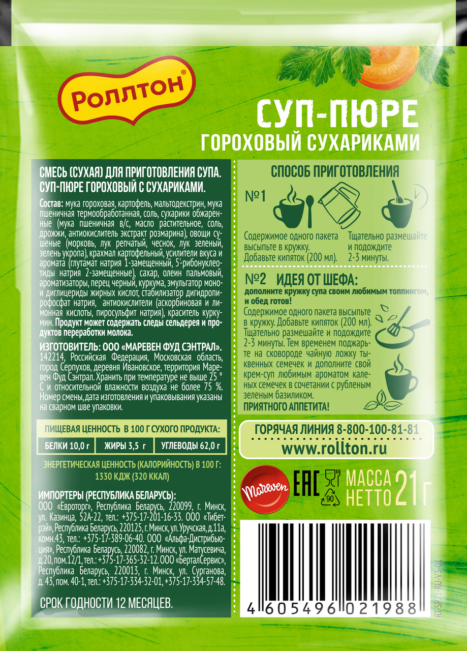 Суп-пюре Роллтон гороховый с сухариками, 21г