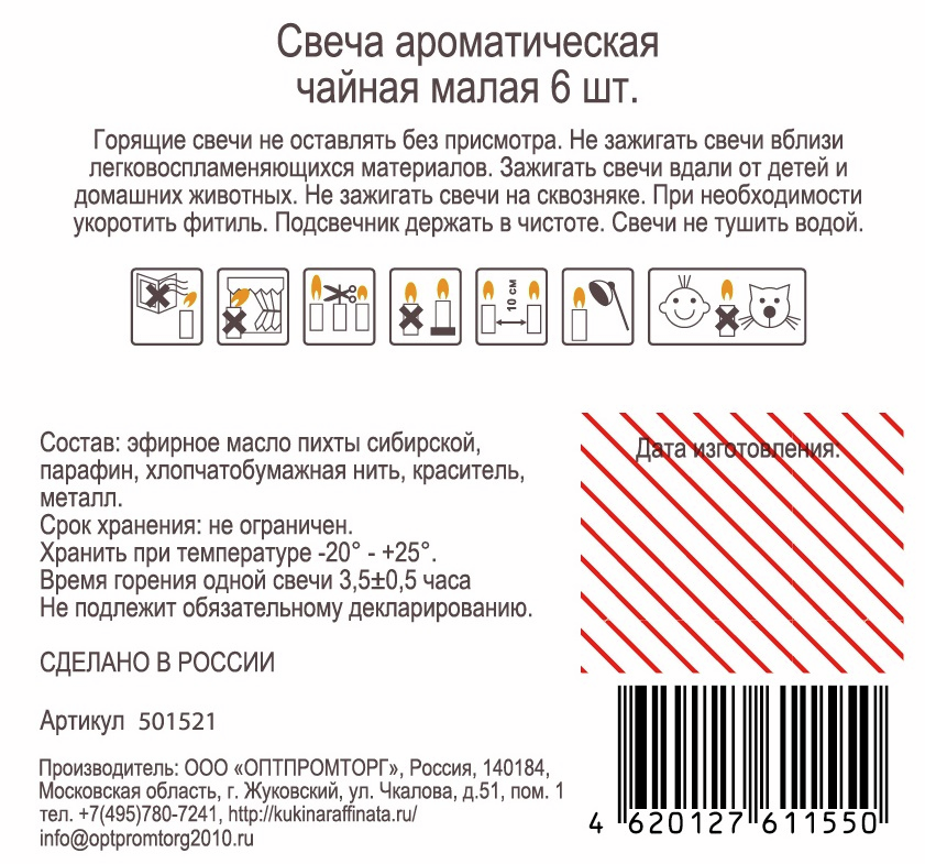 Свеча ароматическая Kukina Raffinata чайная Пихта, 6шт