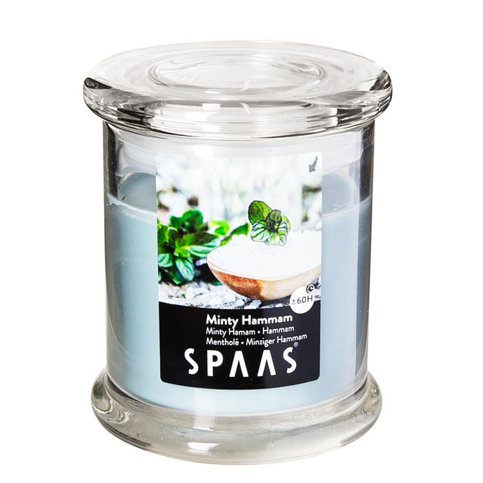 Благодаря своей форме, яркому пламени и освежающему мятному аромату, эта свеча станет прекрасным украшением интерьера для торжества или романтического вечера, создав теплую и уютную атмосферу. Стеклянная, плотно закрывающаяся крышка надолго сохранит приятный аромат, а правильное сочетание воска и фитиля гарантируют, что свечи Spaas горят ярким, стабильным пламенем и могут быть снова зажжены в любой момент. Время гор��ния арома свечи "Мятный хаммам" 60 часов.