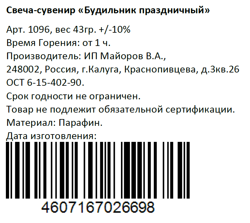 Пора готовиться к празднику! Эта свеча в виде яркого будильника — веселый и оригинальный способ отсчитать время до наступления Нового года. Она станет ярким акцентом в декоре, поднимет настроение и напомнит, что волшебство уже совсем близко. Свеча изготовлена из высококачественного сырья, не растрескивается, не коптит и не оплывает в процессе использования. Устойчивая, ее можно расположить на любой горизонтальной поверхности, не ароматизированная, продолжительного горения.