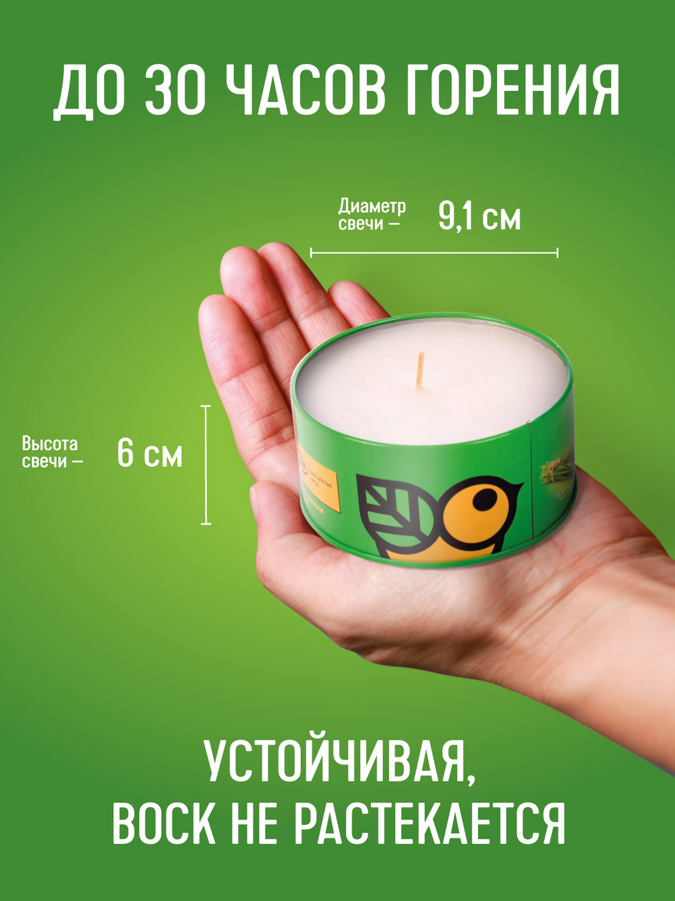 Свеча обеспечивает защиту от комаров на открытом воздухе и в жилых помещениях в течение всего времени горения (до 30 часов) за счет натурального масла цитронеллы. Обеспечивает романтическое настроение в вечернее и ночное время суток, создает атмосферу тепла и уюта. Свечу можно использовать на открытом воздухе или в хорошо проветриваемом помещении площадью 25 м3. Применять с осторожностью лицам с повышенной чувствительностью к резким запахам, аллергическими реакциями к натуральным маслам. Реальный цвет может отличаться от представленного на сайте, ввиду различных настроек монитора.