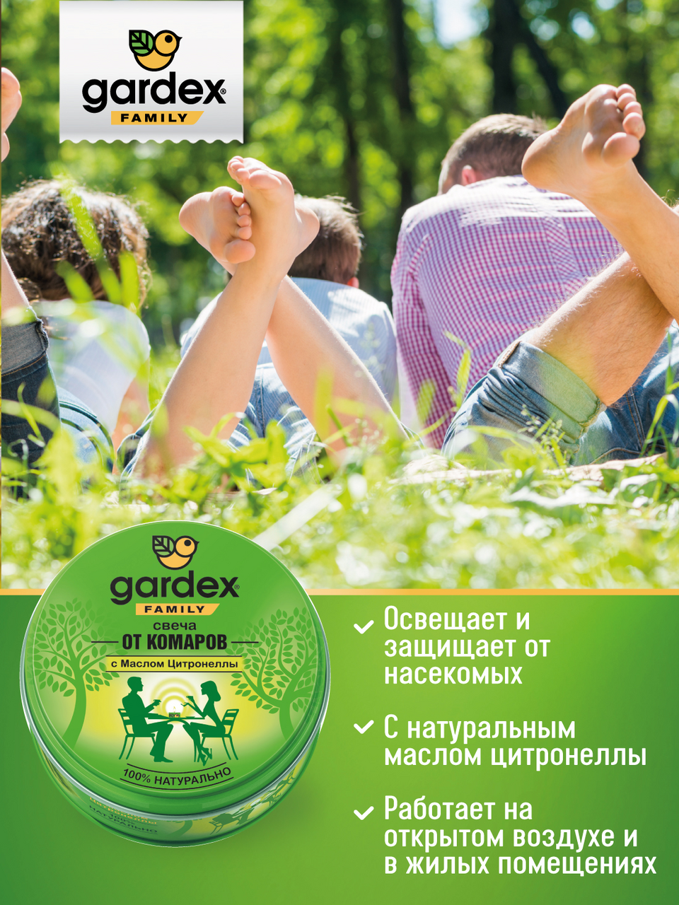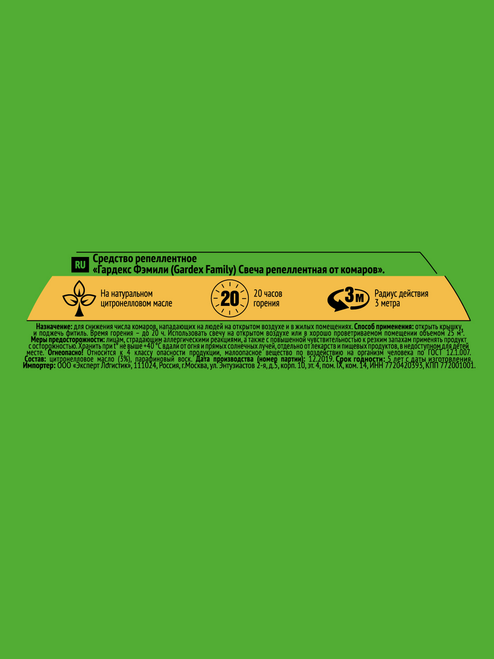 Свеча Gardex Family от комаров белая до 30 часов, 110мл