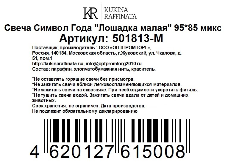 Свеча Kukina Raffinata Символ Года Лошадка малая