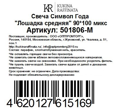 Свеча Kukina Raffinata Символ Года Лошадка средняя
