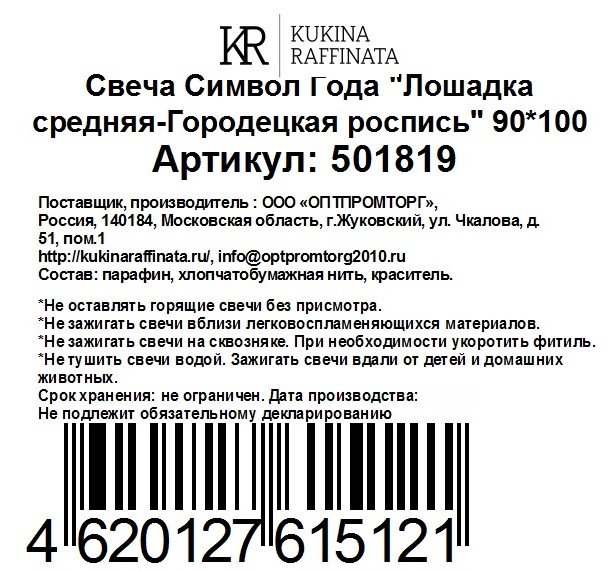 Свеча Kukina Raffinata Символ Года Лошадка средняя Городецкая роспись
