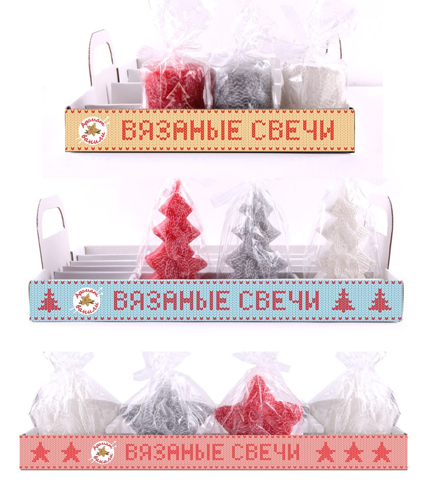 Свеча новогодняя вязаная c ароматом ванили 8см