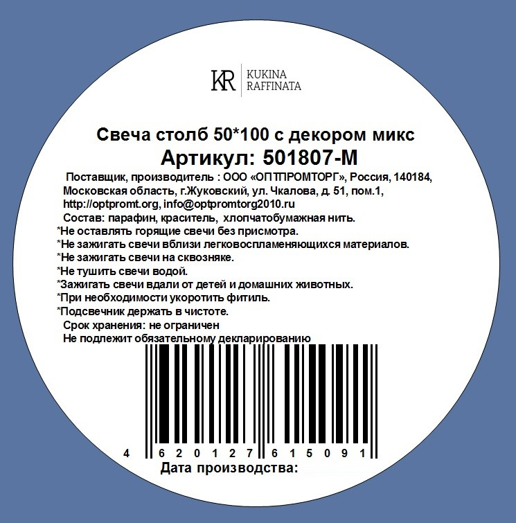 Свеча столб Kukina Raffinata Символ года с декором микс, 10 х 5см