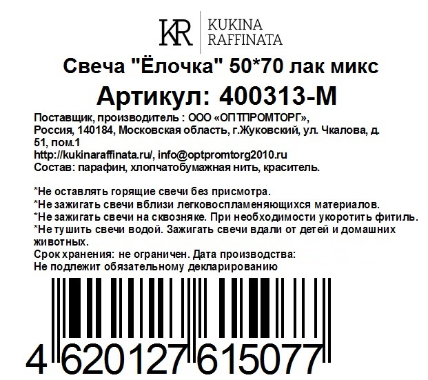 Свеча Kukina Raffinata Елочка на пеньке микс, 7 х 6см