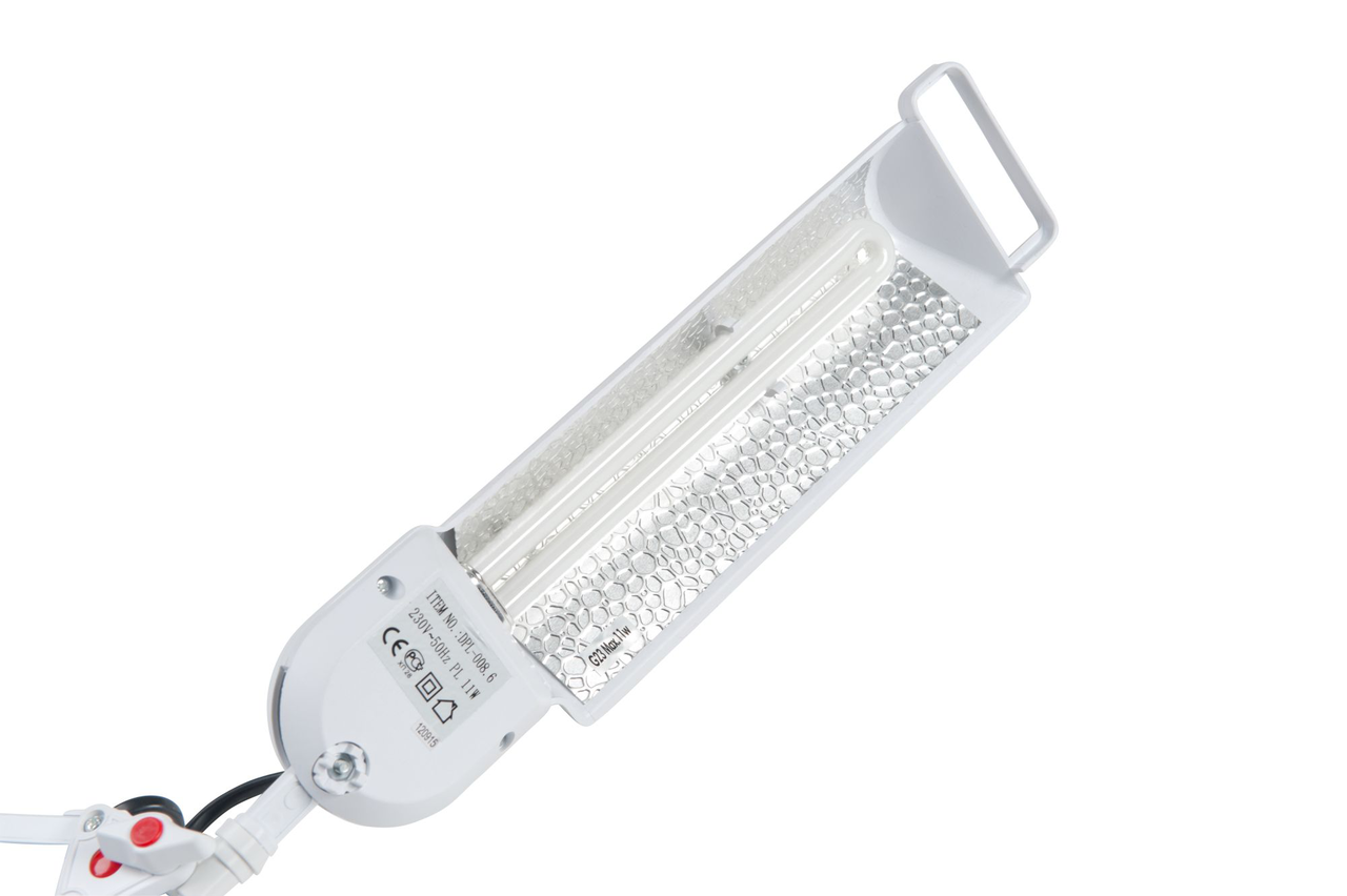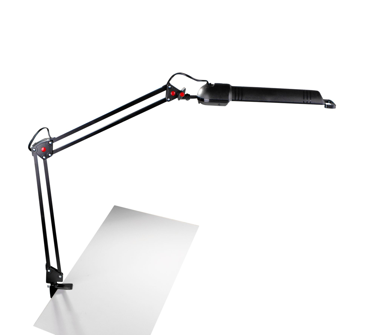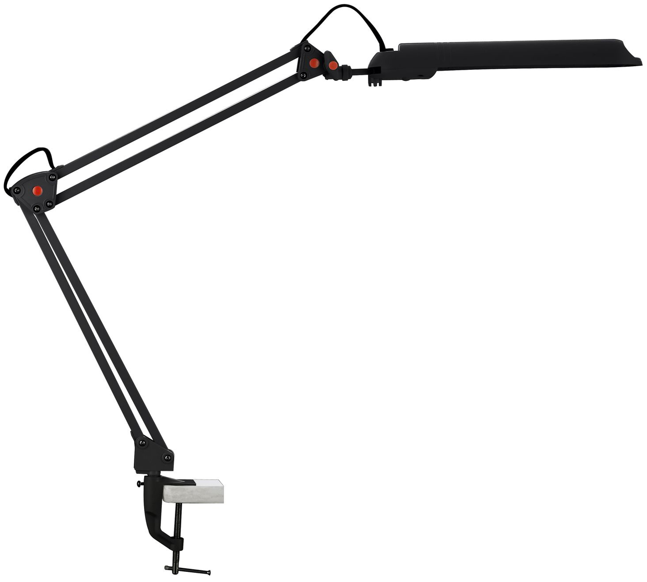 Светильник настольный DPL-008 на струбцине, черный. Подходит для использования дома и в офисе. Крепится к боковой кромке стола струбциной. Цоколь - G23. Лампа энергосберегающая люминисцентная 11 Вт. Материал: металл.
