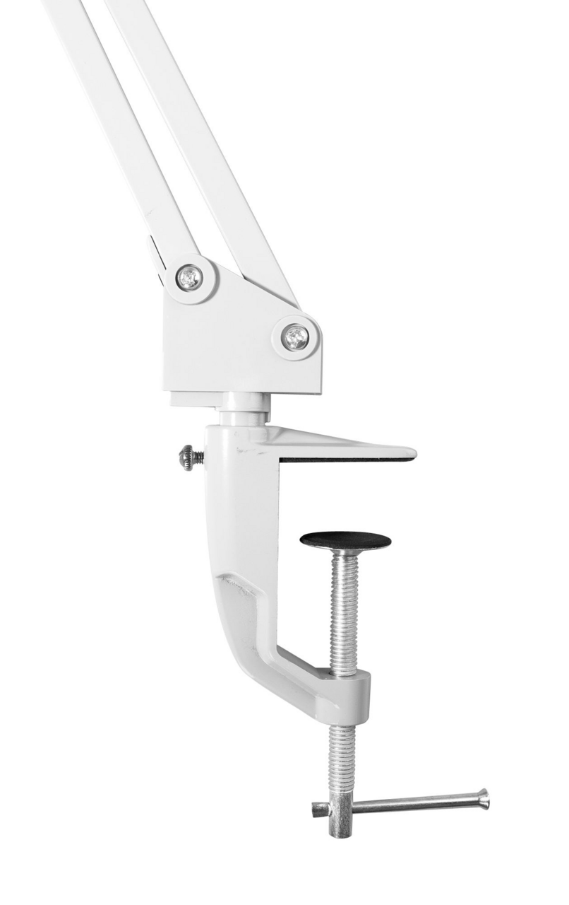 Светильник настольный DPL-008 на струбцине, белый. Подходит для использования дома и в офисе. Крепится к боковой кромке стола струбциной. Цоколь - G23. Лампа энергосберегающая люминисцентная 11 Вт. Материал: металл.