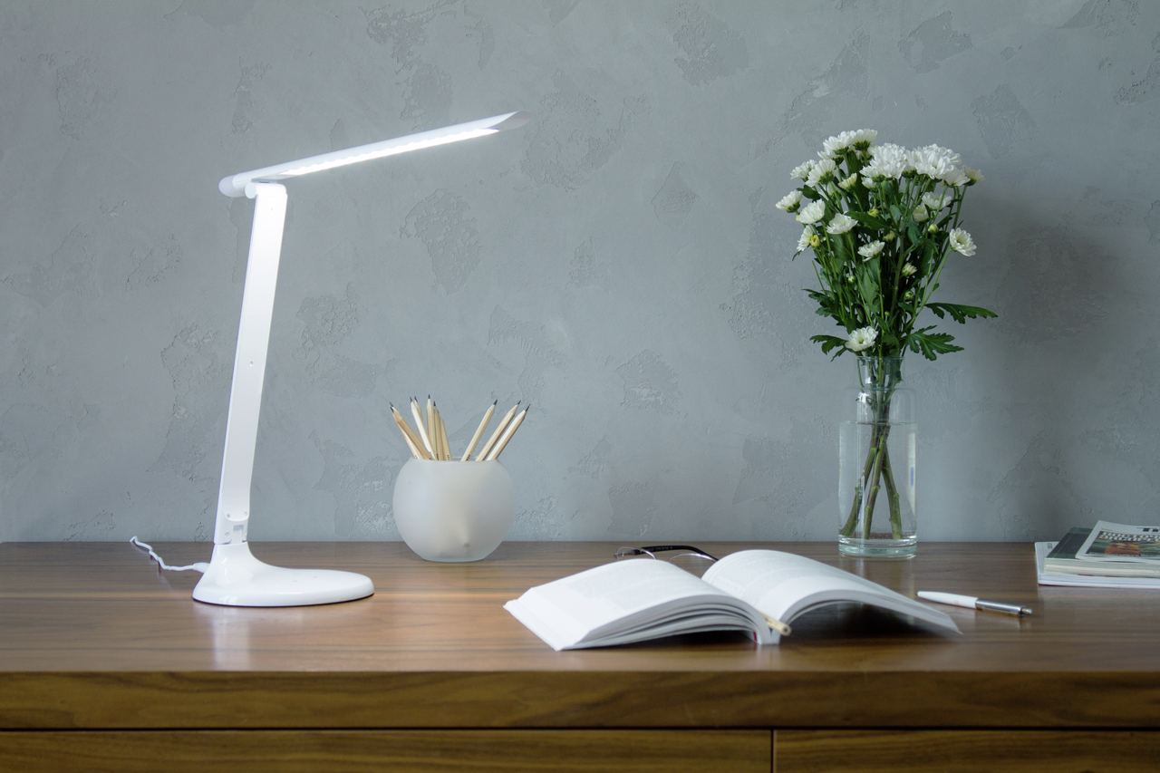 Старт СТ59 — функциональная настольная лампа, является эффективным решением освещения рабочего пространства. Светильник, выполненный в лаконичном современном стиле, производится в двух цветах: черном и белом. Электроприбор станет прекрасным дополнением в домашних интерьерах или офисных помещениях. Светильник оборудован сенсорной панелью для включения, расположенной на его основании. Регулируемый угол наклона позволяет комфортно освещать рабочую поверхность. Благодаря встроенному диммеру настольная лампа имеет три уровня яркости для выбора оптимального режима освещения: от теплого белого (3000К) до холодного белого (6000К). В сложенном состоянии светильник может выполнять функцию детского ночника.
