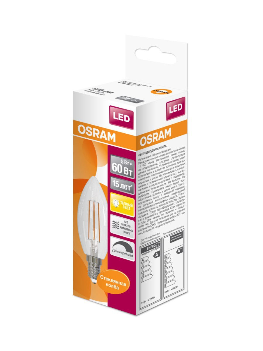 Лампа светодиодная Osram 5W E14 свеча теплый белый