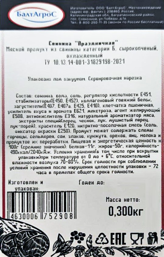 Свинина Балтагрос Праздничная сырокопченая, 300г