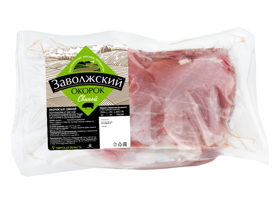 Окорок свиной Заволжский без кости 0.8-1.1кг – охлажденный крупнокусковой бескостный полуфабрикат, нуждающийся в термической обработке. Нежный и сочный окорок – это первосортное мясо, из которого можно приготовить множество вкуснейших блюд. Запекайте его целиком, тушите, жарьте, используйте для приготовления фарша, коптите – все зависит от вашей фантазии и предпочтений. Вакуумная упаковка надежно сохраняет свежесть в пределах всего срока годности. Заволжский мясокомбинат, расположенный в Тверской области, является крупным производителем замороженной и охлажденной мясной продукции, соответствующей самым строгим стандартам качества.