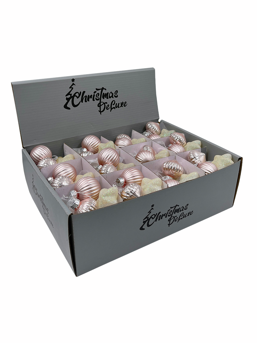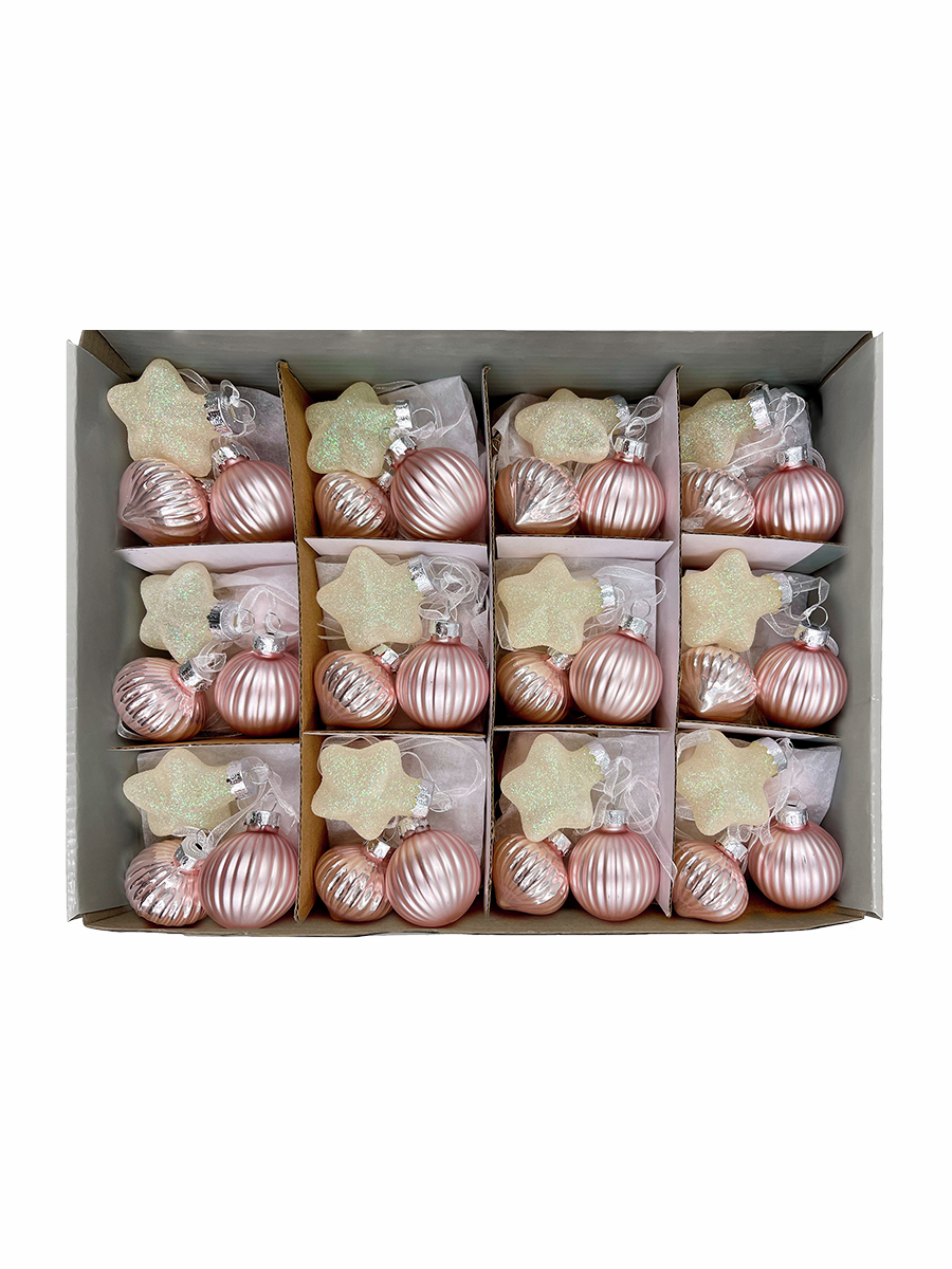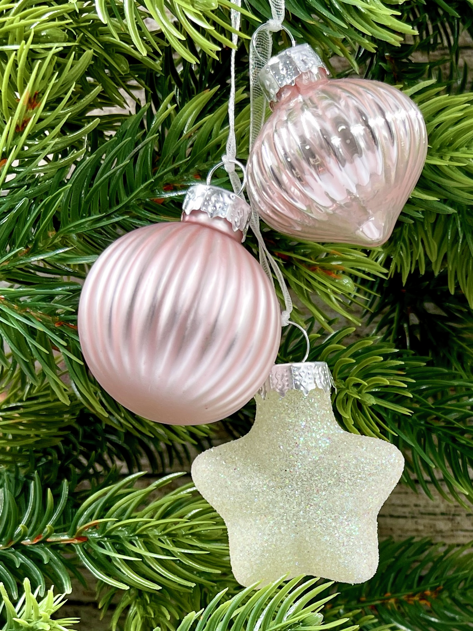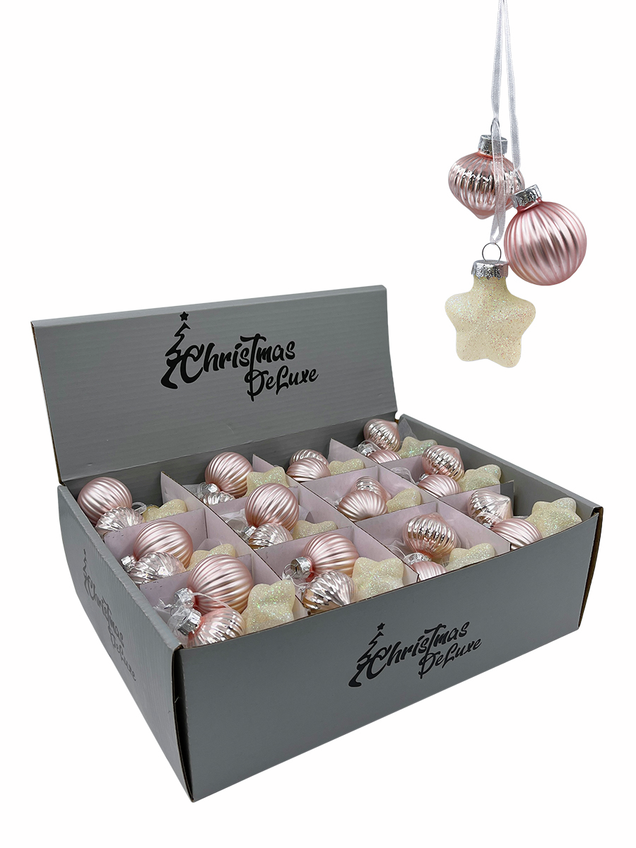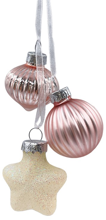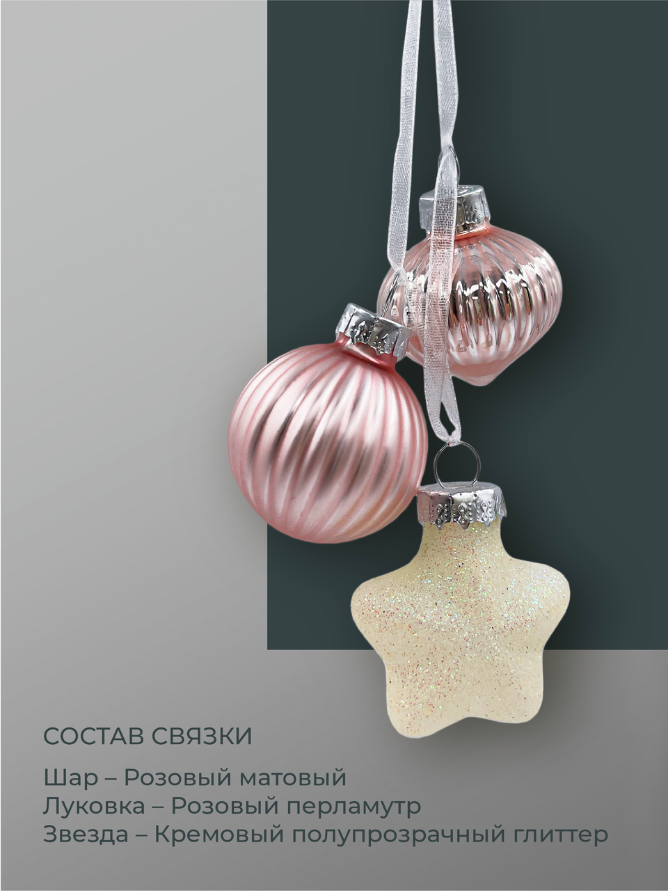 Связка елочных украшений Christmasdeluxe Шар, луковка и звезда розовый 3см, 3шт