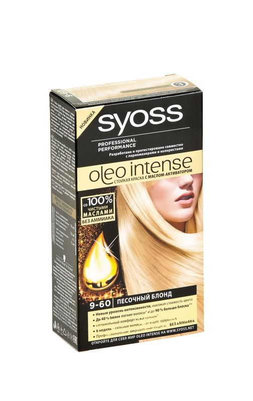 Стойкая краска для волос с маслом-активатором Сьёсс Oleo Intense 9-60 Песочный блонд. Превосходный уход и стойкость цвета: Бережная формула без аммиака заботится о волосах в процессе окрашивания и профессионально закрашивает до 100% седины. Ухаживающие масла помогают окрашивающему пигменту проникнуть глубоко в структуру волоса для интенсивного и стойкого результата.