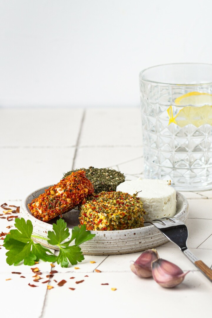 Молоко коровье цельное пастеризованное, соль поваренная пищевая экстра, закваска на чистых культурах мезофильных микроорганизмов, сычужный фермент животного происхождения; молоко коровье цельное пастеризованное, обсыпка Малахитовая (паприка красная и зеленая, лук, морковь, куркума, перец черный, петрушка, укроп, чеснок), соль поваренная пищевая экстра, закваска на чистых культурах мезофильных микроорганизмов, сычужный фермент животного происхождения; молоко коровье цельное пастеризованное, обсыпка Тогараши (паприка, перец красный чили, апельсиновая цедра, кунжут белый и черный, горчичное семя, сычуаньский перец, ламинария), соль поваренная пищевая экстра, закваска на чистых культурах мезофильных микроорганизмов, сычужный фермент животного происхождения; молоко коровье цельное пастеризованное, обсыпка Пикантная с укропом (укроп, чеснок, перец черный), соль поваренная пищевая экстра, закваска на чистых культурах мезофильных микроорганизмов, сычужный фермент животного происхождения.