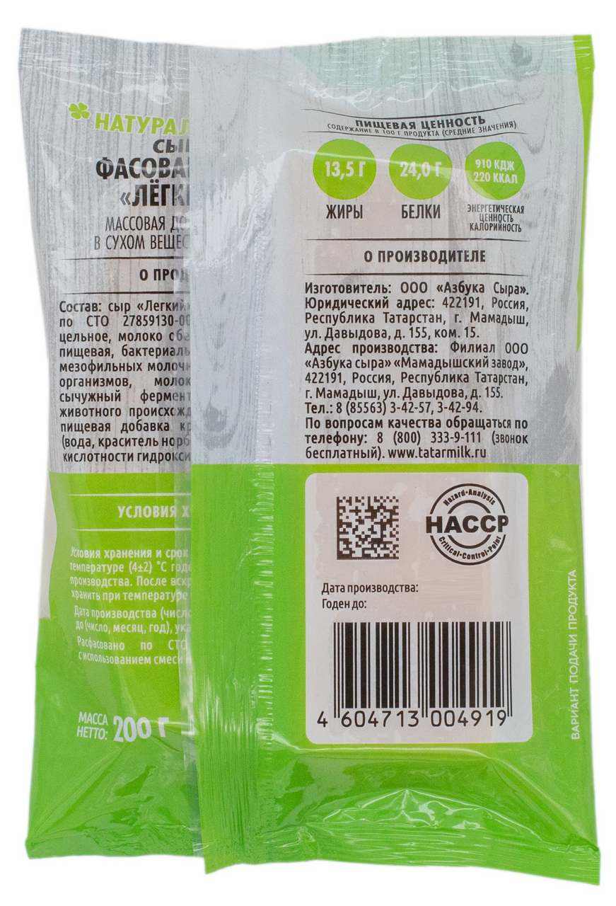 Сыр Азбука сыра Легкий 30%, 200г