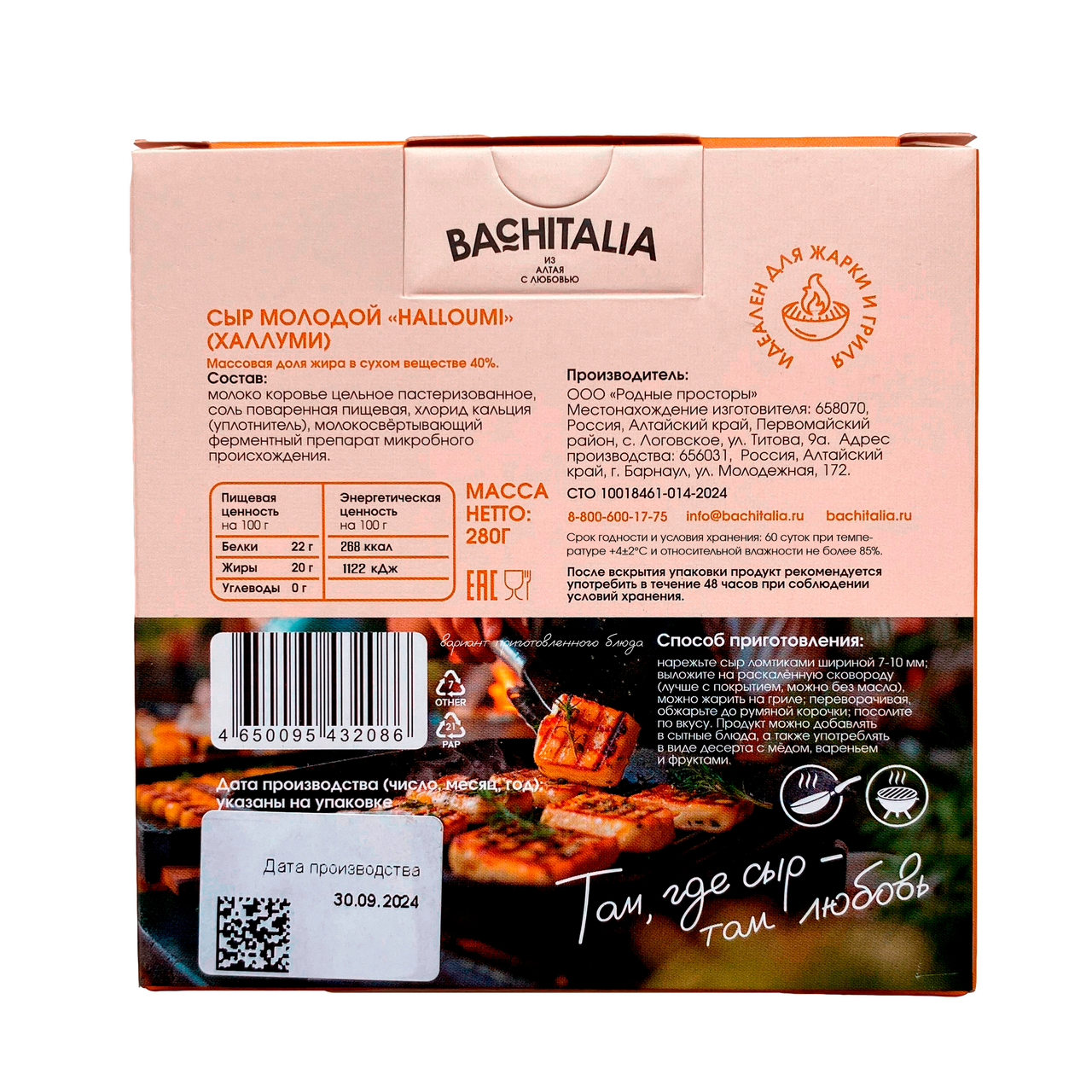 Сыр Bachitalia Халлуми для жарки и гриля 40%, 280г