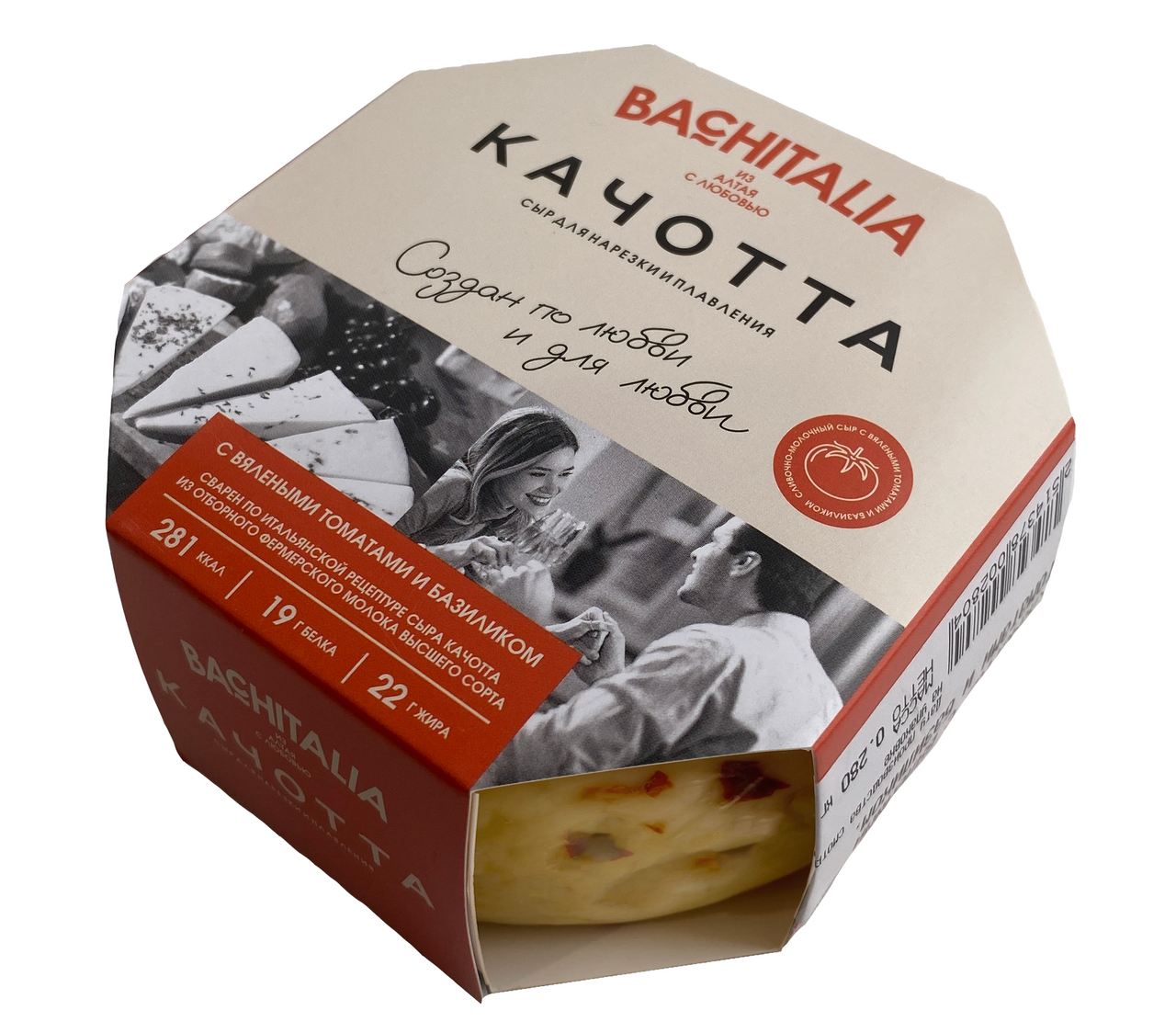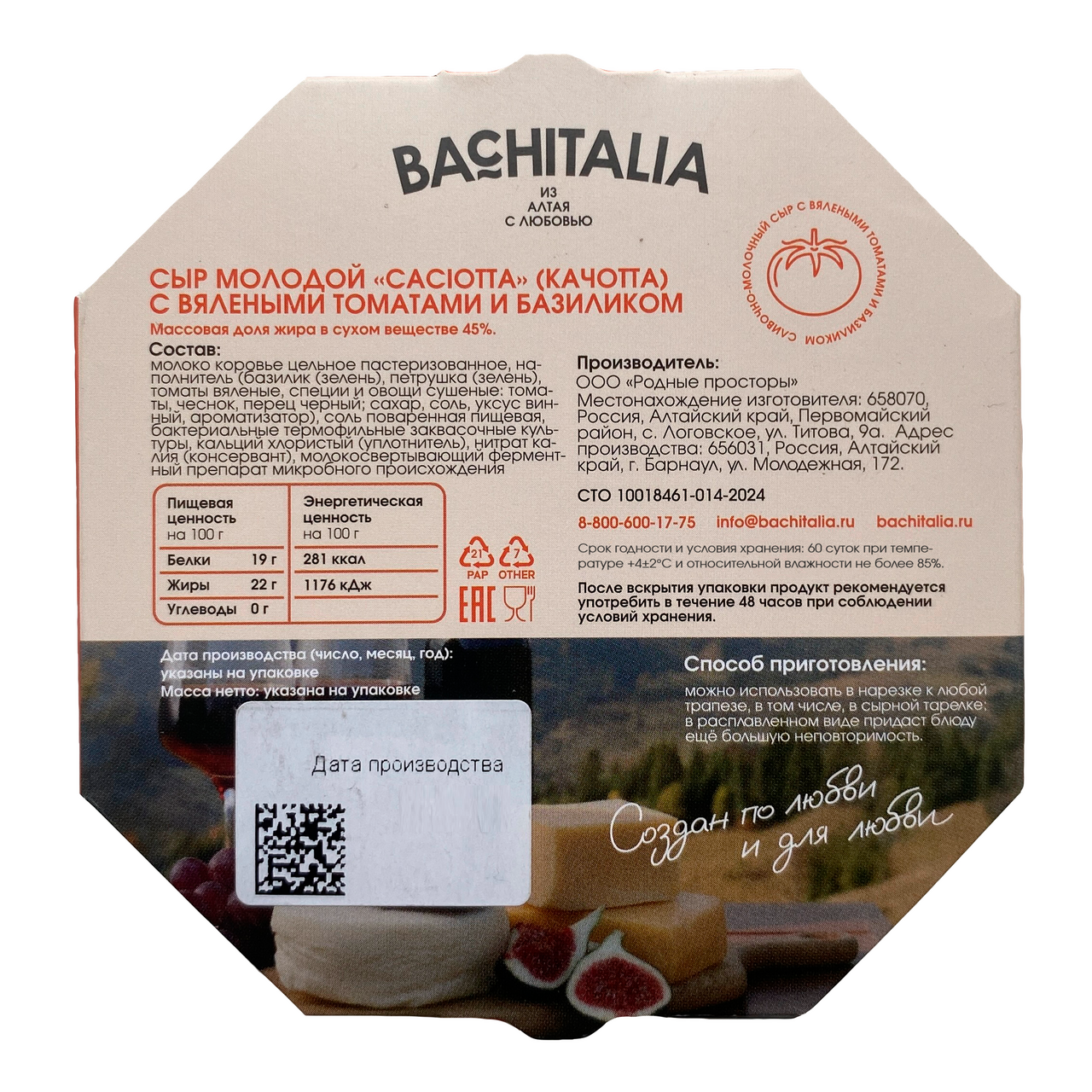 Сыр Bachitalia Качотта с вялеными томатами и базиликом 45%, ~300г