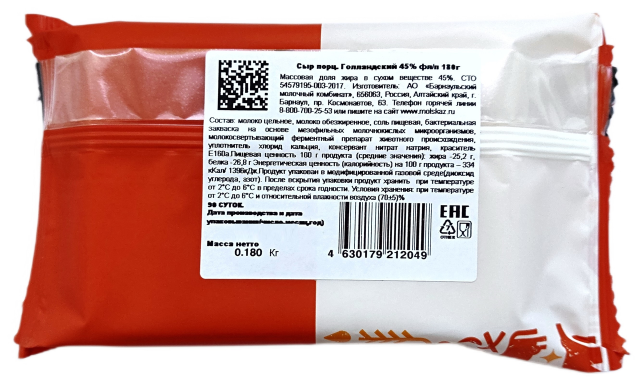 Голландский сыр - это полутвердый сыр из коровьего молока с пластичной текстурой, равномерными глазками и классическим молочным вкусом с легкой остротой и кислинкой, богатый белком, кальцием и витаминами. Он используется в качестве самостоятельной закуски, на бутербродах и в приготовлении горячих блюд.