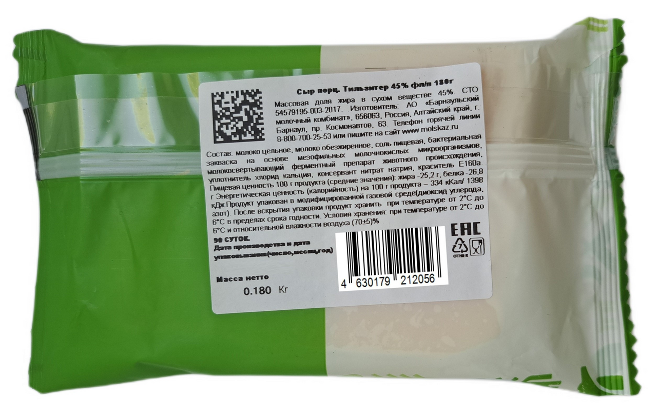 Сыр Частица Алтая Тильзитер 45%, 180г