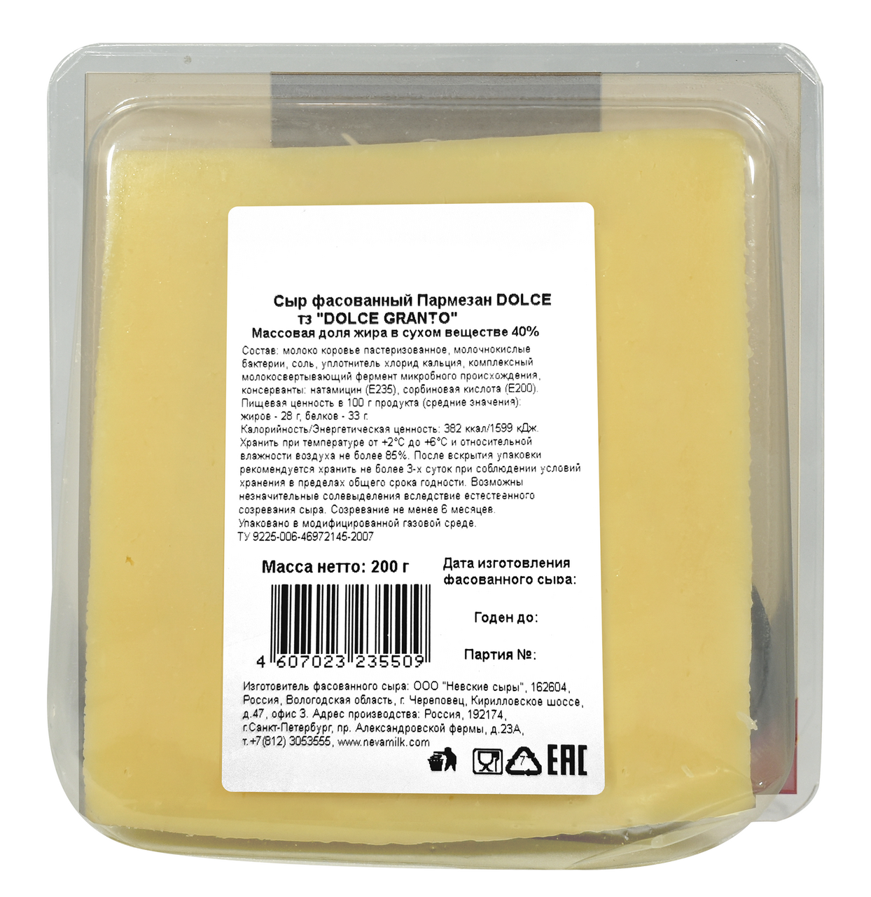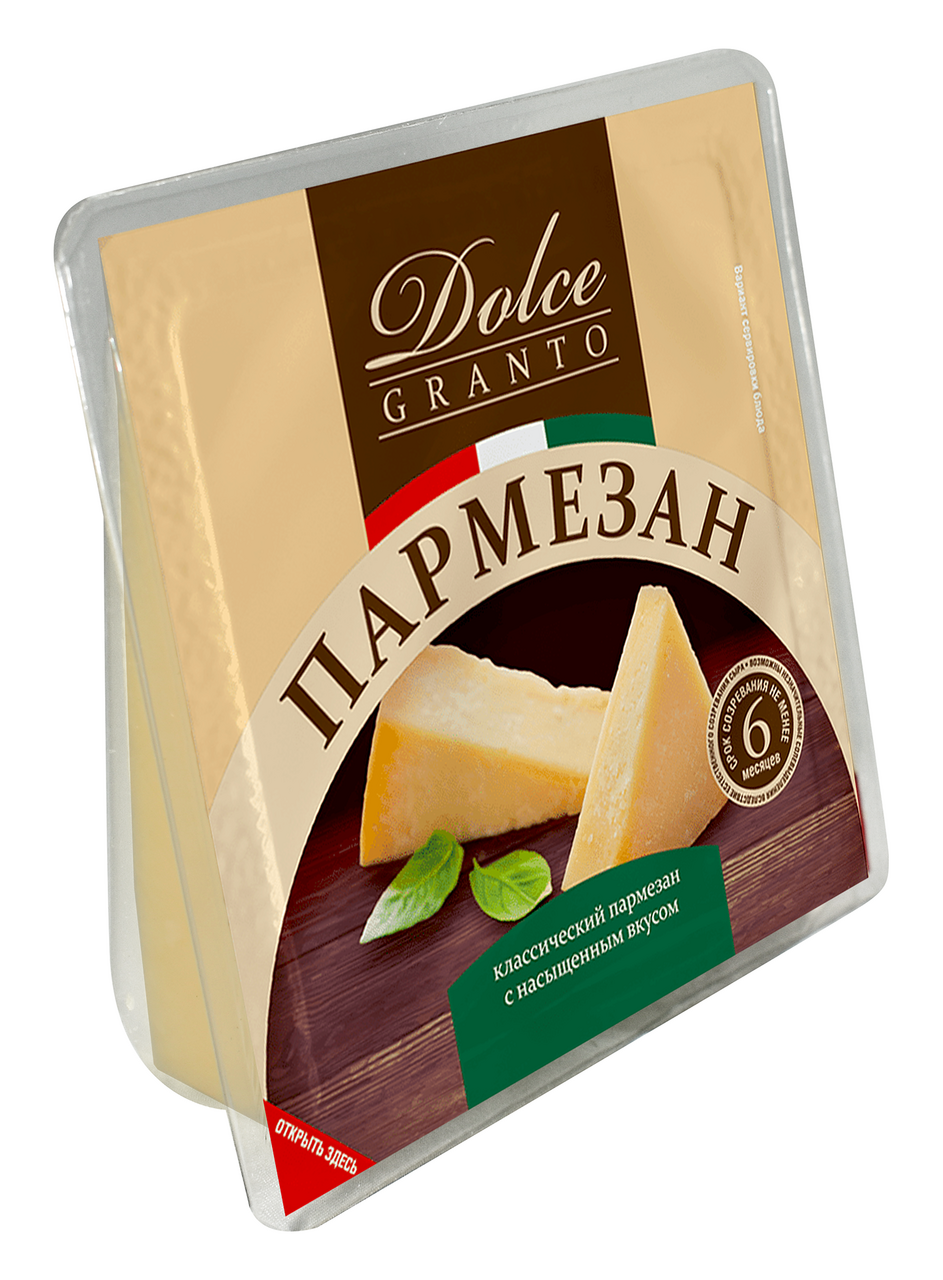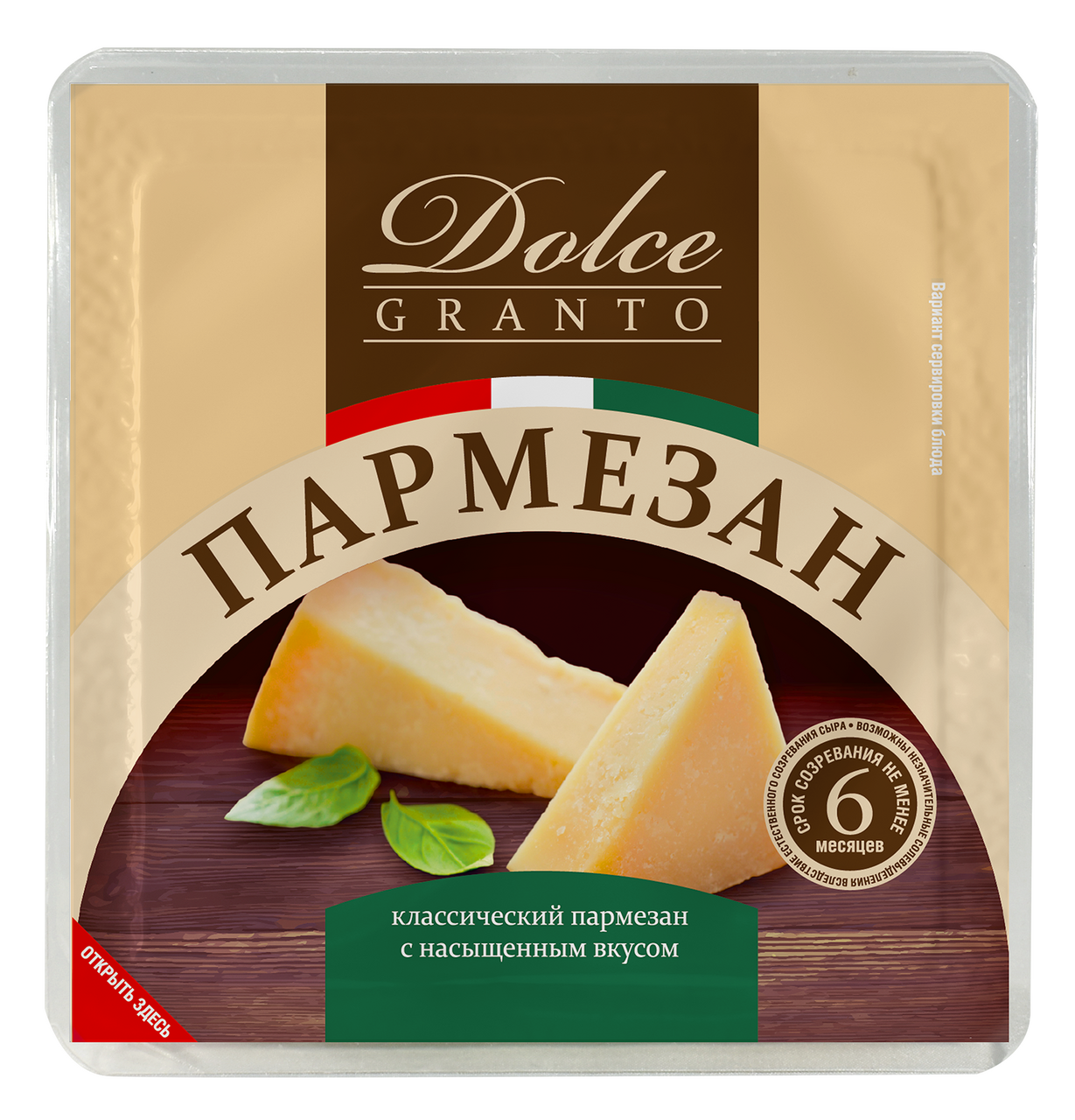 Сыр Пармезан Dolce Granto - традиционный и изысканный твердый сыр для тех, кто предпочитает классику и неизменно верен своему вкусу, период созревания 6 месяцев. Имеет яркий сливочный вкус и аромат. Пармезан придаст вашим блюдам изысканный вкус и аромат. Идеален в составе сырной тарелки, для приготовления пасты и пиццы, а также различных салатов: с рукколой, креветками, томатами.