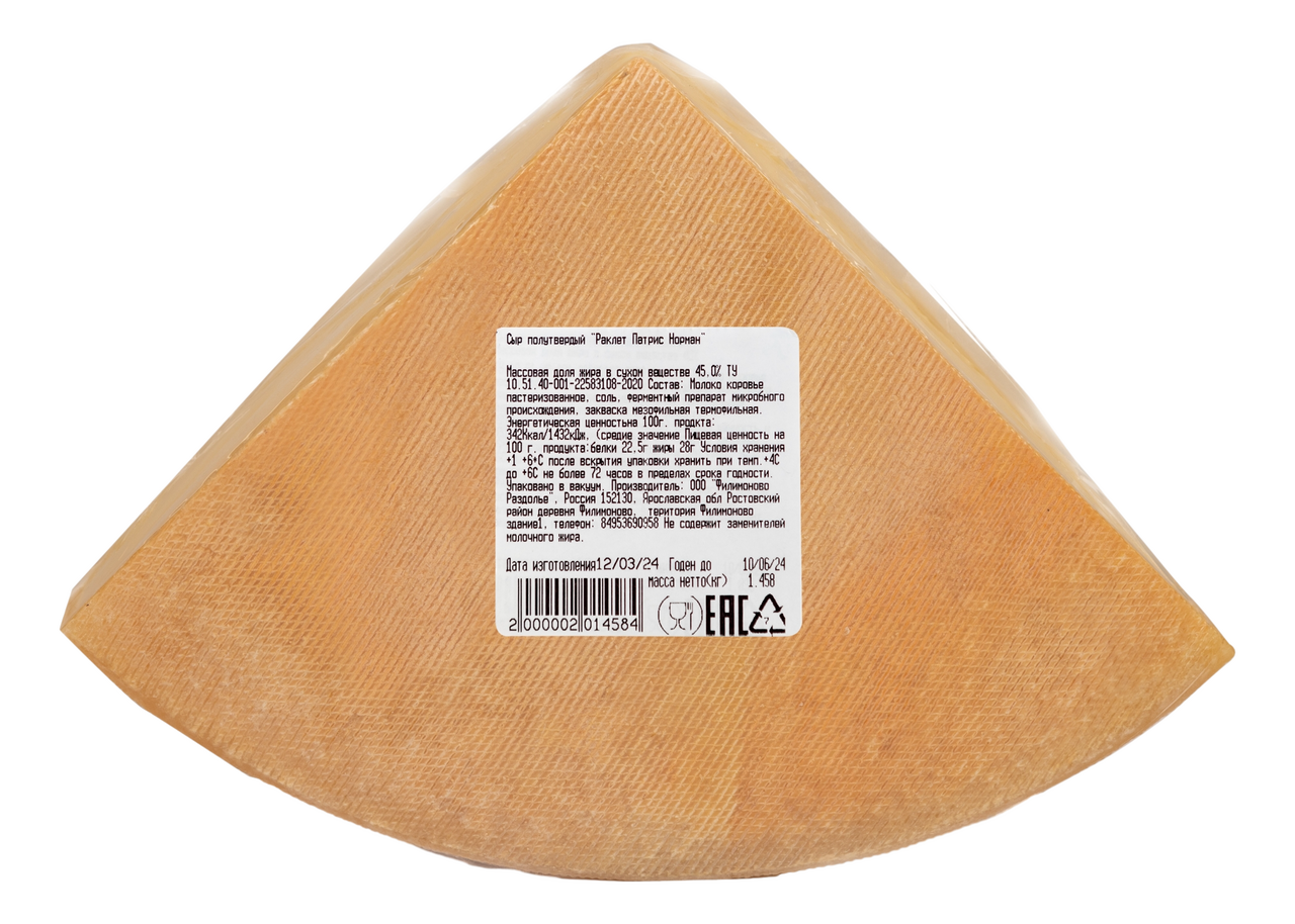 Сыр Eco Village Раклет Патрис Норман твердый 50%, ~1.4кг
