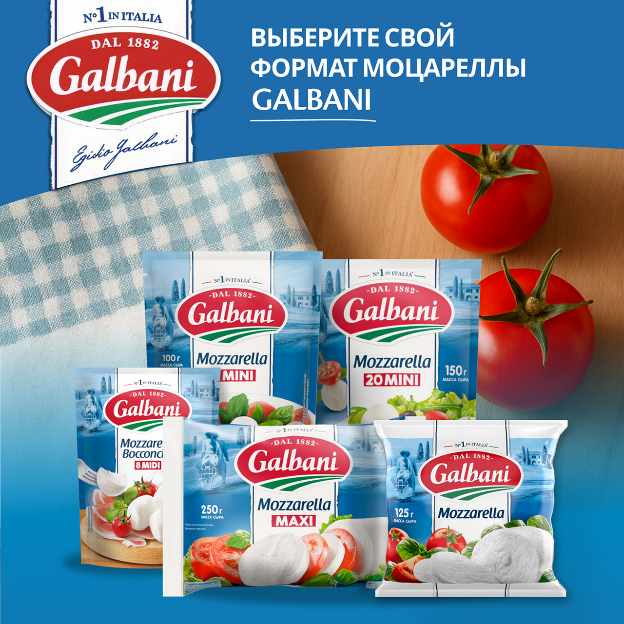 Сыр мягкий Galbani Mozzarella — 100% натуральный продукт с нежным молочным вкусом. Сыр моцарелла производится из молочной сыворотки: ее нагревают до образования пластичной сырной массы, которой затем придают форму шара. В составе сыра нет красителей, ароматизаторов и усилителей вкуса. Сыр Galbani Mozzarella 125 г отлично сочетается со свежими овощами. Его можно использовать для салата Капрезе, а также для приготовления горячих блюд и закусок: гриль-сэндвича с соусом песто, зеленью и свежими томатами, итальянского омлета Фриттата, пиццы. Бренд Galbani известен с 1882 года. С этого момента и по сегодняшний день сыры Galbani производятся по уникальной рецептуре и технологии, чтобы вы могли оценить их превосходный вкус. Наслаждайтесь настоящим моментом вместе с итальянскими сырами высшего качества!