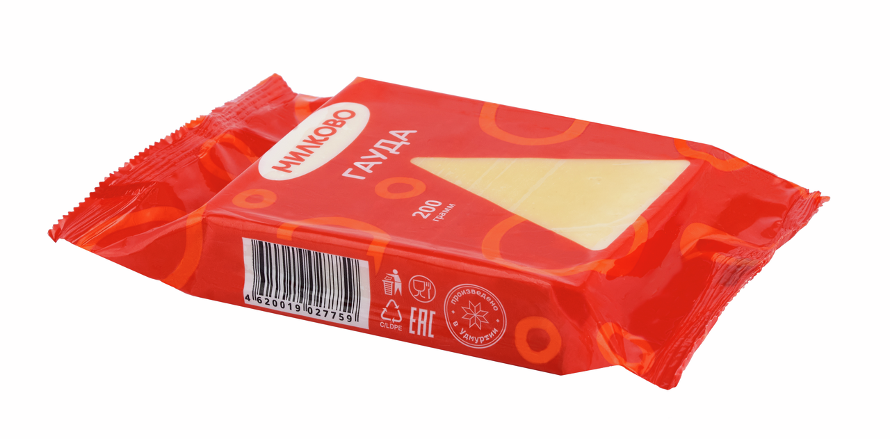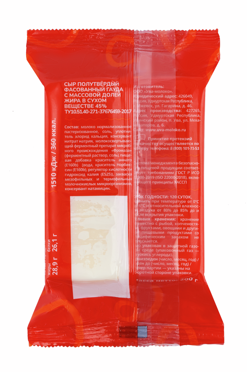 Молоко нормализованное пастеризованное, бактериальная закваска мезофильных и термофильных молочнокислых микроорганизмов, соль поваренная пищевая, уплотнитель хлорид кальция пищевой краситель Аннато, молокосвертывающий ферментный препарат микробиального происхождения, консервант нитрат натрия, консервант натамицин.