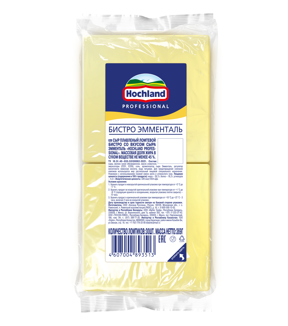 Сыр Hochland Professional Бистро Эмменталь плавленый ломтики 45%, 369г