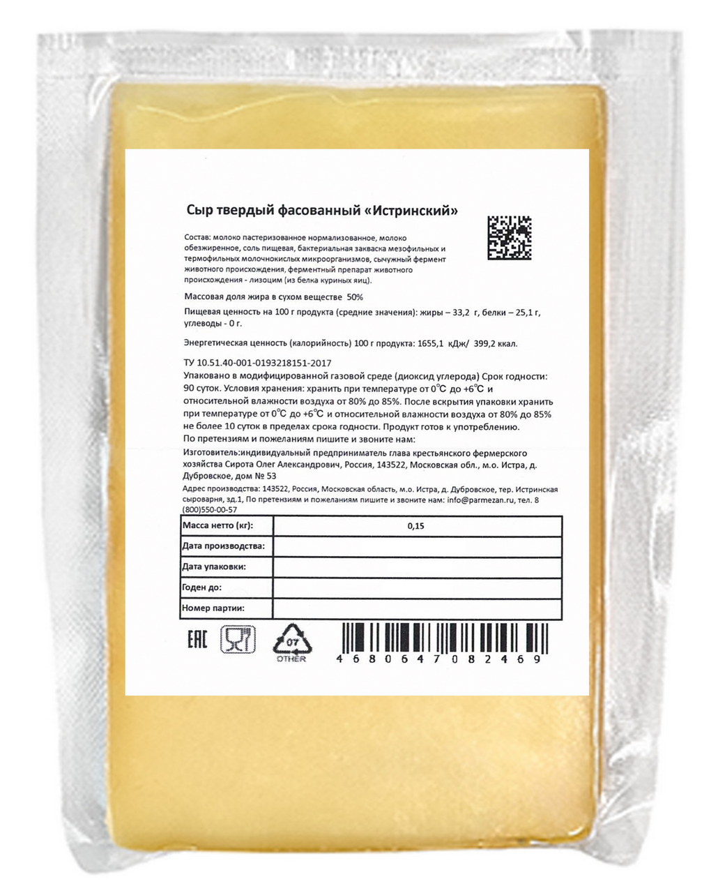 Сыр Истринская Сыроварня Олега Сироты Истринский твердый 50%, 150г