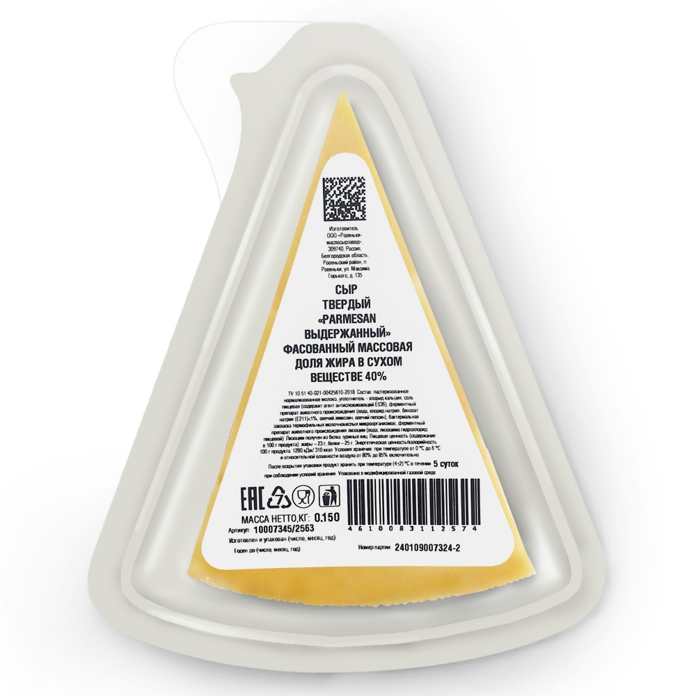 Ценная находка для любителей итальянской кухни. Этот знаменитый твердый сыр изготовлен на основе лучших рецептов неаполитанского государства исключительно из натурального сырья. Вкус сыра нежный и в то же время сложный, насыщенный. Он сочетает в себе оттенки спелых фруктов и созревших орехов, которые органично наполняют длительное яркое послевкусие. Пармезан не только станет достойным самостоятельным угощением, но и придаст глубокий аромат блюдам русской и итальянской кухни.