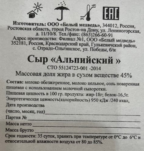 Сыр Кубанский гостинец Альпийский 45%, ~2кг