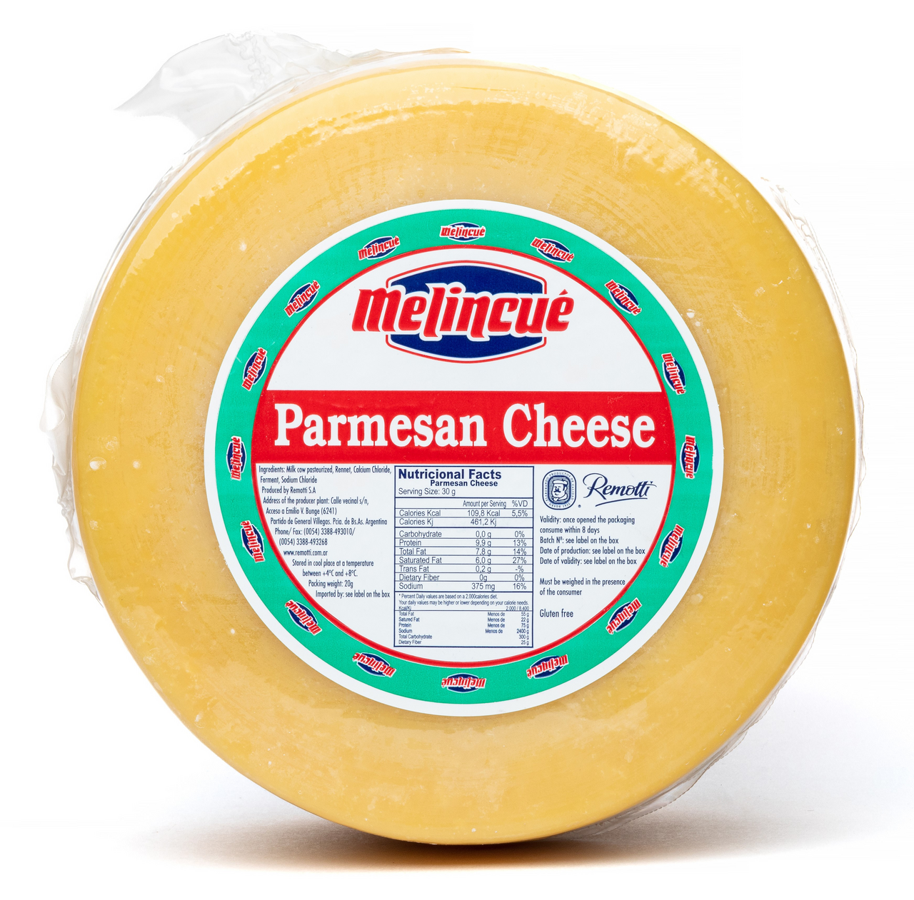 Сыр Пармезан Melincue - твердый сыр из отборного коровьего молока, выдерживается в течение 3 месяцев на специальных деревянных столах, где приобретает твердую корочку и насыщенный аромат. Пармезан незаменим для приготовления пиццы, пасты, ризотто, салатов и лазаньи. Прекрасно сочетается с фруктами и красным вином. Компания Ремотти появилась в Аргентине в 1930 году. На сегодняшний день она является одной из самых старейших молочных компаний в Аргентине.