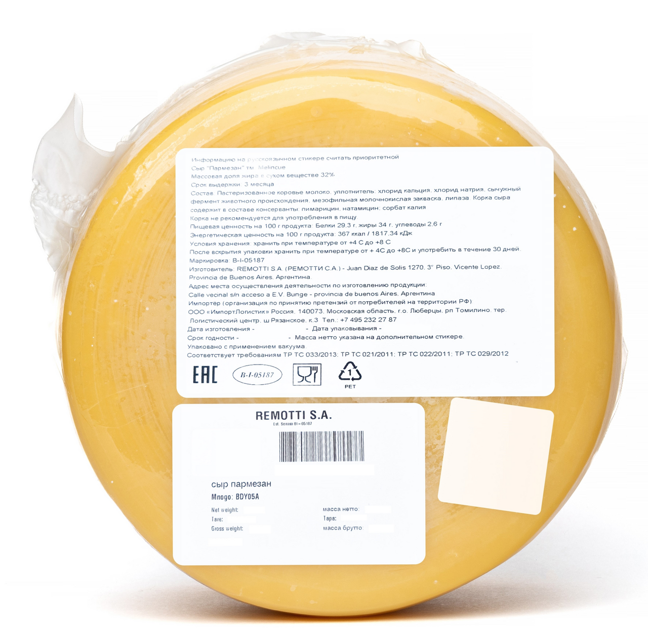 Сыр Melincue Пармезан 3 месяца выдержки 32%, ~7кг