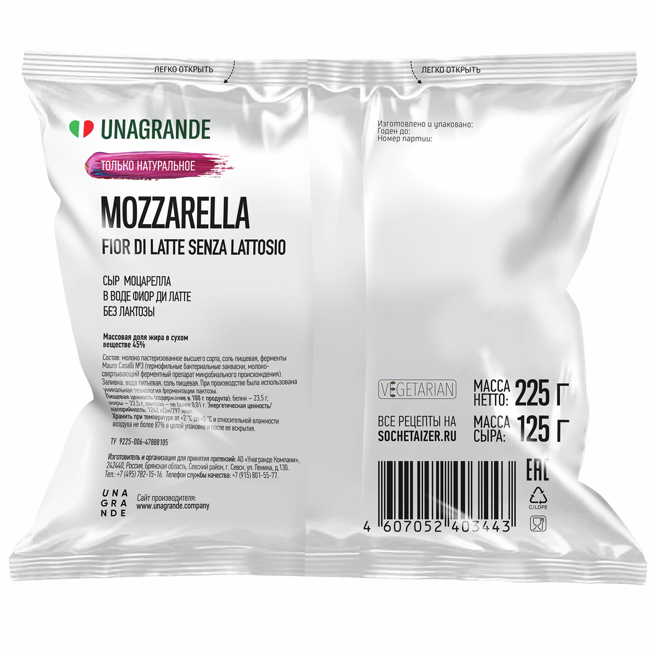 Сыр Unagrande Моцарелла безлактозный мягкий 45%, 125г