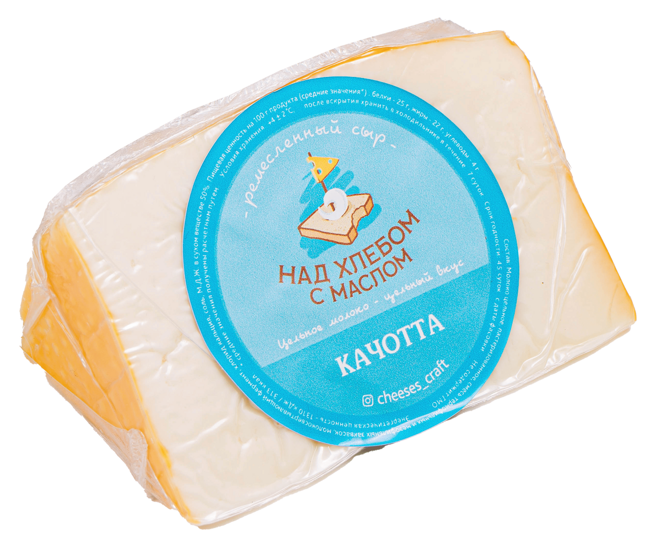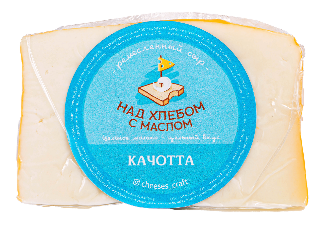 Сыр Над хлебом с маслом Качотта, молодой итальянский сыр 6-8-недельной выдержки. Сделан он из натурального молока по оригинальному рецепту. Продукт обладает нежным сливочным вкусом и натуральным ароматом. По структуре он достаточно мягкий и пластичный, легко плавится и равномерно распределяется. Продукт богат белком, фосфором, кальцием и витаминами. Он хорошо усваивается организмом, восполняя запас энергии и питательных веществ.