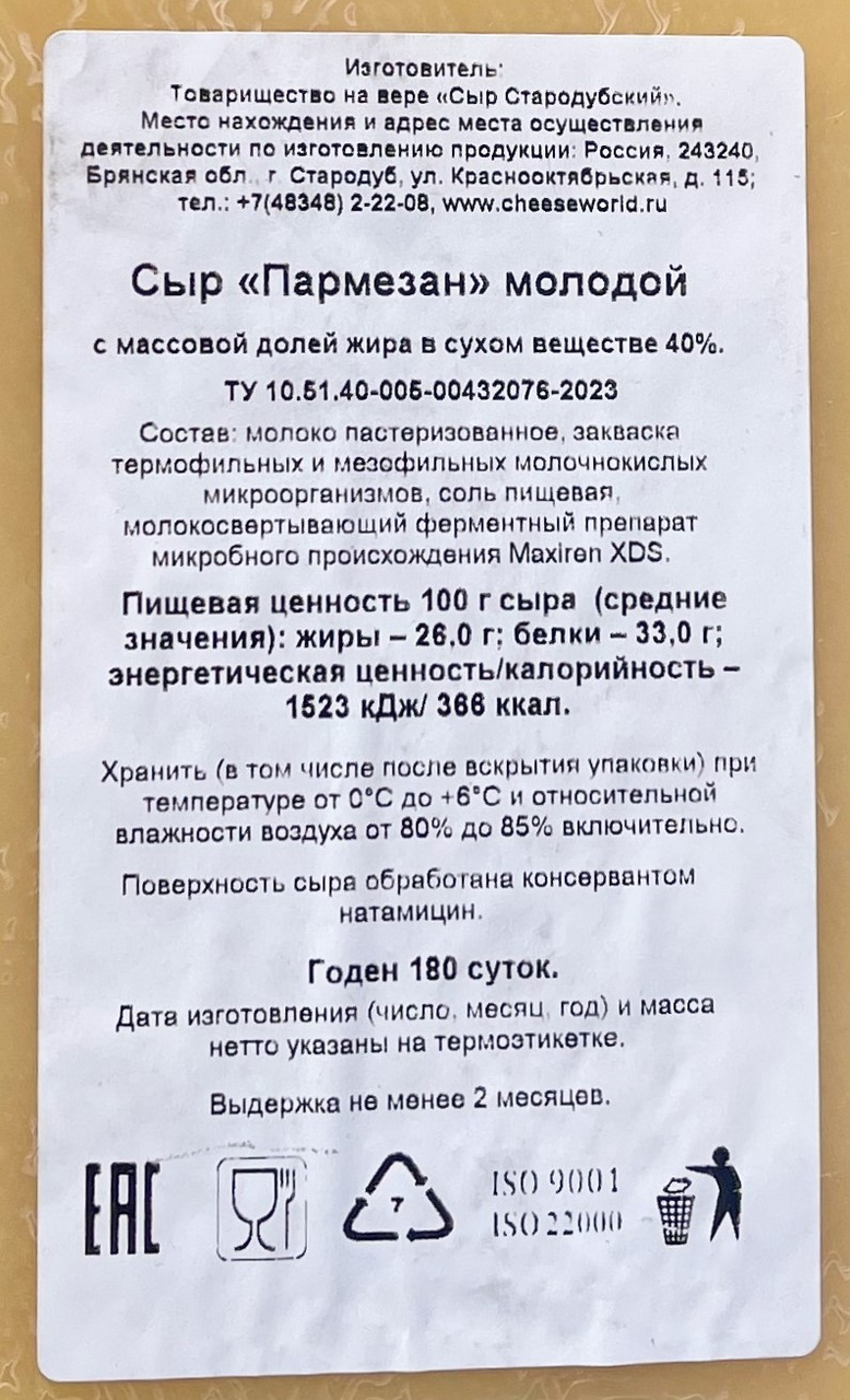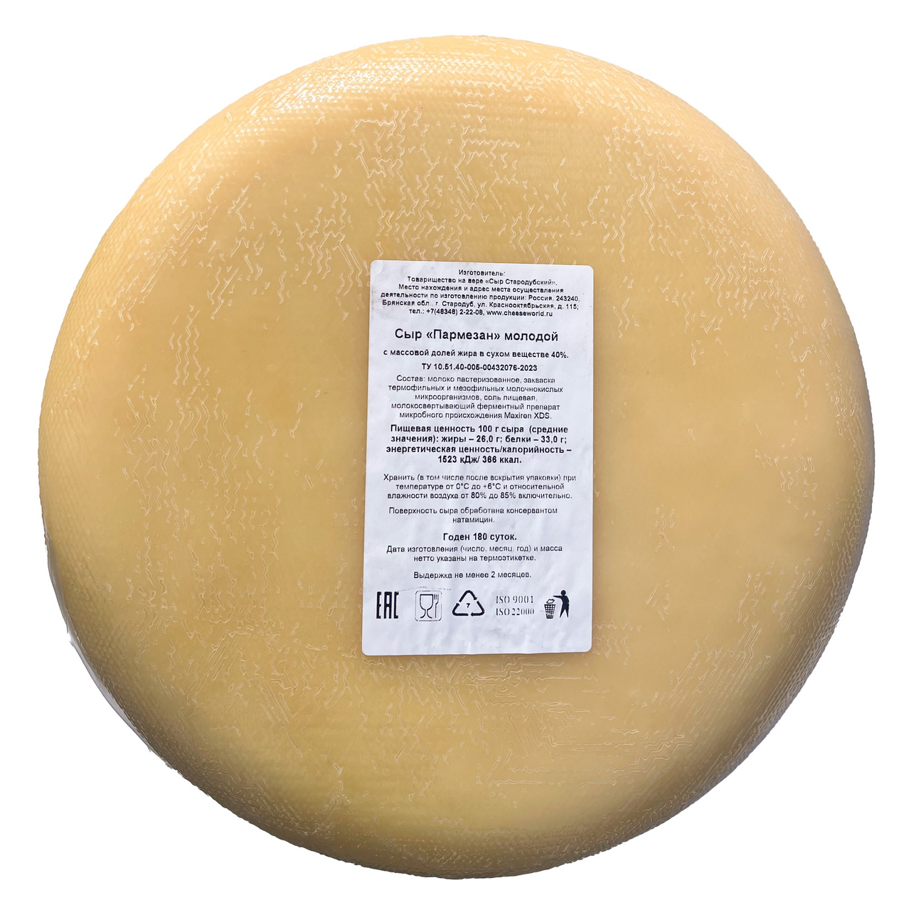Сыр Пармезан молодой круглый 40%, ~7.7кг