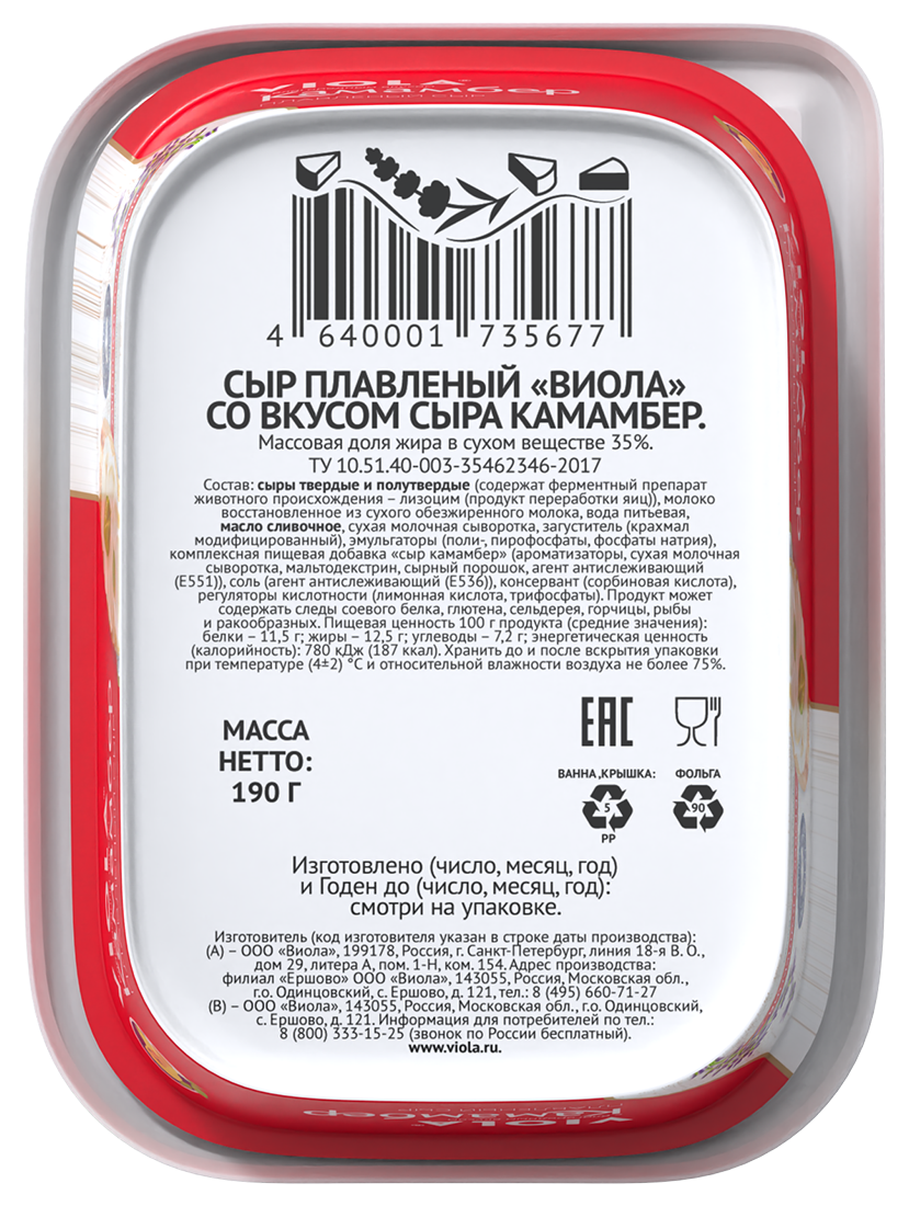 Откройте для себя плавленый сыр Viola с изысканным вкусом Камамбера -нежный сливочный сырс благородной трюфельной нотой.Новинку оценят практичные гурманы и любители оригинальных вкусов. Сливочнаятекстура Viola Камамбер в удобном формате позволитлегко создать идеальный бутерброд. Просто намажьте сыр на хрустящий багет или добавьте в теплый круассан. Viola мгновенно превратит ваш завтрак в изысканное гастрономическое путешествие.