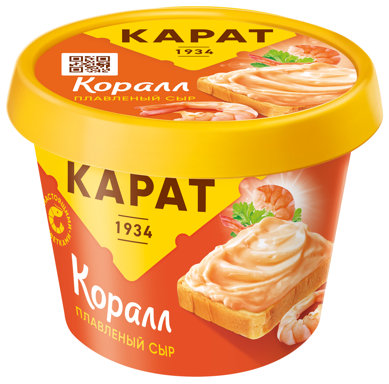 Сыр, масло сливочное, вода питьевая, сухое обезжиренное молоко, загустители (Е1422, Е407, ксантановая камедь, камедь целлюлозы), эмульгатор Е331, соль пищевая, креветки очищенные, регулятор кислотности лимонная кислота, консервант сорбат калия, ароматизатор, краситель аннато, перец черный.